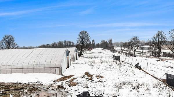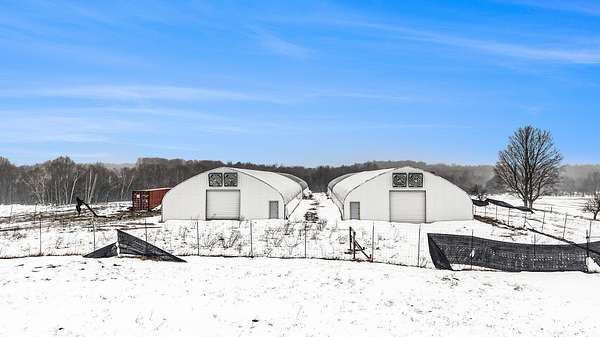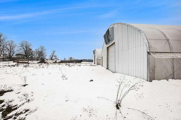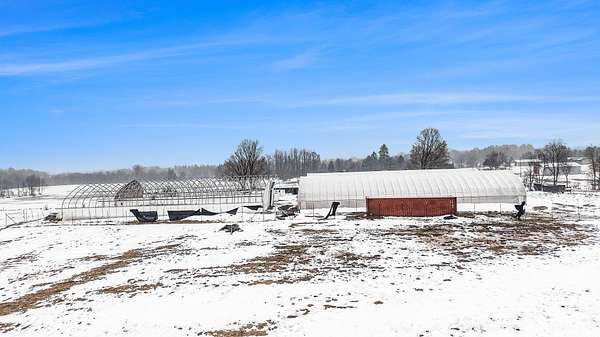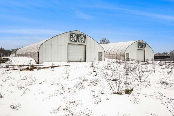 Unique 10-acre opportunity in rural Lake County just outside Luther, ideally located near the popular Tin Cup State Game Area / Tin Cup Loop with a massive amount of recreational traffic from side-by-sides, ORVs, snowmobiles, hunters, and anglers. This property is fully fenced with a 6-foot privacy-screened perimeter and gated access, offering security, function, and flexibility for a variety of future uses. The site features four fully engineered greenhouses, each approx. 42' x 120' and 20' tall, designed for a 50 lb snow load and year-round use. Every structure includes 12' roll-up doors and steel entry doors, and each is equipped with a Modine 400,000 BTU propane heater, ventilation with exhaust fans and roll-up sides, and materials that meet fire retardant requirements per prior commercial standards. A 6'' well is installed, the property has an approved perk test and septic location, and a 40' shipping container on site provides additional storage. Consumers Energy previously approved 600-amp single-phase power to the location (buyer to verify status and installation options), though electric has not yet been run to the property. This setup lends itself to a wide range of potential uses such as sod or turf production, nursery/greenhouse operation, seasonal produce or flower business, equipment or inventory storage, hobby farming, or a future homesite with extensive outbuilding space (all subject to township approval and zoning). Some storm damage is present on two of the structures but the core value lies in the infrastructure and well already in place, the secure fencing, utilities groundwork, and the high-traffic recreational corridor location. If you've been looking for improved land with serious potential in Lake County, this property deserves a closer look.