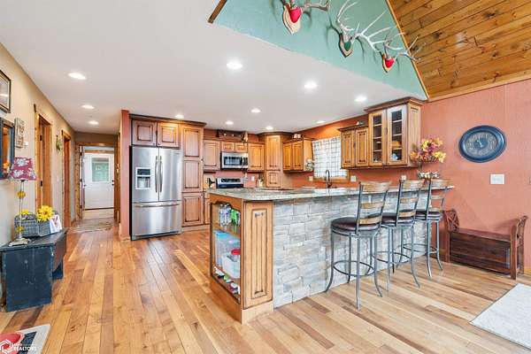 A Hunter's Dream Awaits! Among other elite hunting farms, this one stands alone. Every aspect is covered, & the groundwork has already been laid. For starters, this farm's been masterfully expanded, locking in some prime habitat. Over the past decade, extensive work has been completed, turning as much of this land into the best habitat as possible including, clearing and adding food plots, thousands of trees planted of various species, income generating habitat programs, strategically laid out trail system to lighten the impact of ingress/egress, various water sources, travel corridors established, secluded bedding areas, and much more. The land generates a generous annual income of $29,437, by cash renting the tillable acres, and various other CRP programs. Overlooking this property sits a Beautiful Custom Built home with a stunning view. Outside features 2 insulated detached garages, covered porch, stamped patio, & huge deck! Inside you will discover the perfect balance of luxury and comfort with., walnut flooring & kitchen cabinets, granite counter tops, beautiful fireplace, huge windows, geothermal zoned heating/cooling, spray foam insulation, Huge private En Suite, 4 bedrooms total, 3 full baths, walkout basement with large but cozy family room & lots of storage. It doesn't get much better than this in Southeast Iowa, the combination all of this with the farm's high success rate of harvesting mature target bucks, the hunt is over, Call before this opportunity is Gone!