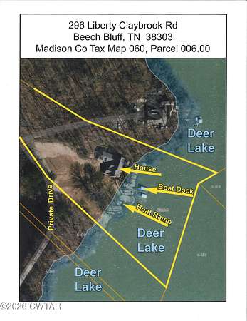 ONE OWNER LAKEFRONT HOME IN DEER LAKE with its own private concrete boat ramp and private dock. Large spacious rooms, 3 Bedrooms, 2 Full & 2 Half Baths, vaulted great room and dining room, open kitchen with breakfast bar and walk in pantry, Primary suite with tray ceiling and huge walk in closet that connects to separate laundry room. Upstairs features 2 bedrooms with connecting Jack & Jill bath + large rec rm with half bath. Gas log fireplace in Great Rm & Rec Rm, smooth ceilings throughout, Huge full walk out basement with 3rd garage bay 40 Ft deep + workshop + safe rm + storage rm. Fabulous wooded lakefront lot with deck off great room leading down a staircase to the private boat dock + private concrete boat ramp from main drive to lake. Don't miss the opportunity to live on and enjoy this beautiful watershed lake in northeast Madison Co, TN.