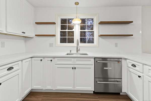 Est $2,643/moc.1962 Classic Ranch just renovated for it's new owner. The original hardwood floors have been restored in all the bedrooms, and the large living room. The kitchen, family room and hall have new luxury vinyl floors. The kitchen is now bright with new cabinets, new counters, and all new appliances. The upstairs bathrooms have been renovated, but still has some originality to them. The lower level does have a finished room with heat and a half bath. The boiler is new, and town records show the roof replacement was in 2022. The lot is lightly wooded in the back, and has great curb appeal!
