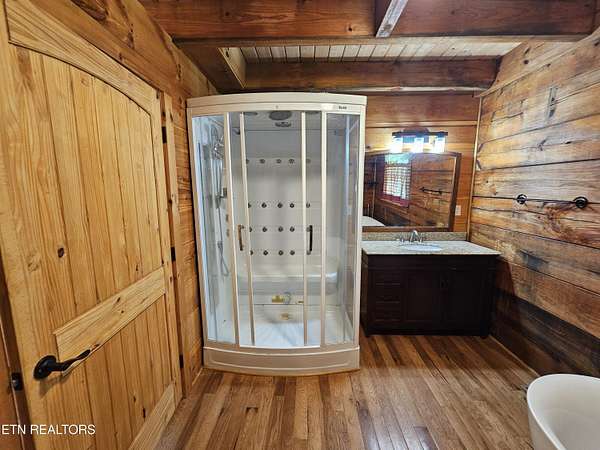 Charming Log Cabin-Style Home with Spacious Kitchen & Unfinished Basement Welcome to this unique property featuring a beautiful full of rustic charm and endless potential. Set on a peaceful lot, this rare opportunity offers flexibility for multi-generational living, rental income, or a private guest retreat. Step inside and be greeted by warm wood tones, exposed beams, and a stunningly large kitchen perfect for entertaining or everyday cooking. The kitchen boasts generous counter space, a pantry, and a layout designed for both functionality and style. The master suite boosts two walk in closets between the bedroom and bathroom. A bathroom that happens to have a full-size tub, and sauna shower. Downstairs, a full unfinished basement provides a blank canvas for your vision-whether it's a workshop, extra living space, or storage. Don't miss your chance to own this versatile property with timeless appeal and room to grow. Schedule your showing today!