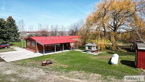 HOMESTEAD with PREMIER SHOP near Rigby, Idaho. This charming 3 bed, 2 bath upgraded cedar-sided manufactured home on a permanent foundation sits on 2.46 beautifully treed acres with highway access, offering peaceful, rural living without covenants. The home features a functional, light-filled layout with cozy spaces and front/back covered patios. The property boasts an automatically sprinkled lawn, fruit trees, and a tiny forest. Animal lovers and hobbyists will appreciate the lean-to for livestock/storage, corrals, loafing shed, hog farrowing shed, and other shed with water & power, plus room for a chicken coop and greenhouse. The dream-come-true 40x60 detached industrial shop is fully insulated, heated, and features a finished office, storage room, work bench, and 220 power outside for a camper. Perfect for a business, workshop, or home business, it can house semi tractor-trailers. Located just minutes from downtown, hunting, and fishing, and 1.5 hours from Jackson Hole, WY, and West Yellowstone, MT (both Yellowstone National Park gateways). This versatile property is also a potential rental income source. Bring your animals and skills to this one-of-a-kind Eastern Idaho property.