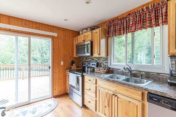 A retreat awaits you as you drive into your affordable, peaceful get away just off US131 on the South side of Kalkaska. The serene setting will help you unwind as you relax on the screened in porch ,taking time to breathe. The 26 acres has plenty of room for you and all your furry friends, including plenty of wildlife. This 2 bed, 2 bath is cozy and has an Up North cabin feel with the wood paneling, and wood cabinets in the kitchen.The pellet stove is efficient to ensure in the winter months you will be warm. The 30 x 100 pole barn keeps your recreational vehicles undercover and gives you ample storage and work shop area. All information deemed accurate, but should be verified