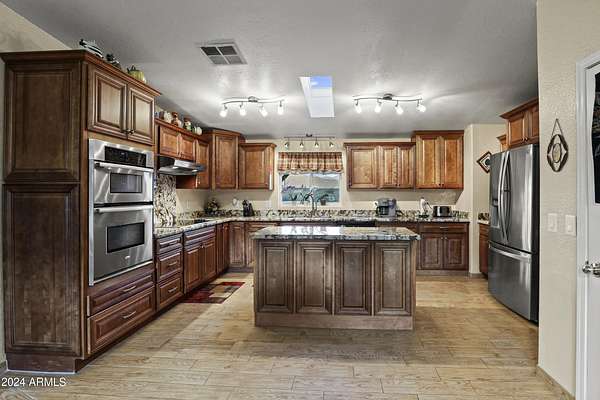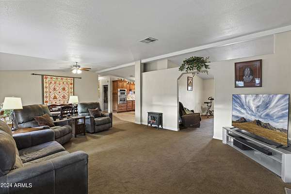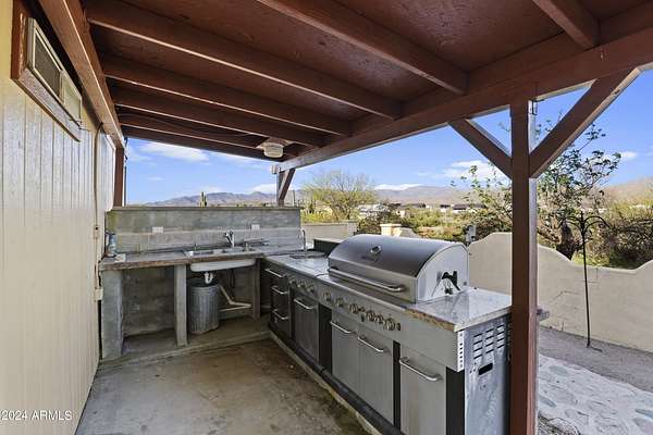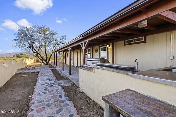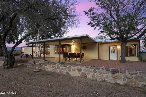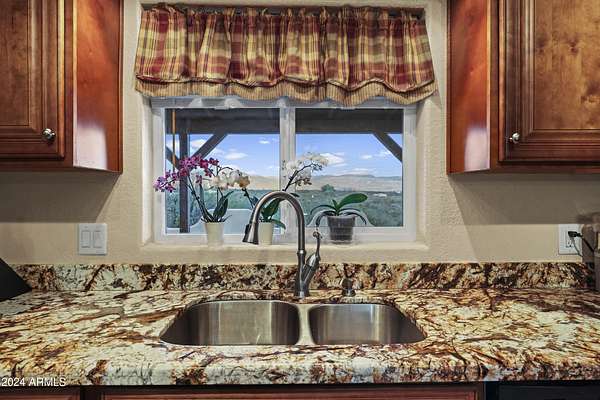 Nestled amidst the serene landscape of Tonto Basin, this exquisite property at 296 W Burtons Lane offers a unique blend of luxury and tranquility. Spanning over 6.14 acres of pristine land, you're guaranteed privacy with no possibility of neighbors building close by. The estate boasts a fully-equipped RV hookup, perfect for the adventurous at heart. The grounds are a horticultural delight with multiple fruit trees dotting the landscape, providing both shade and bounty. The residence itself offers phenomenal views of Mount Ord, Four Peaks, and Picture Mountain, ensuring a picturesque backdrop to your daily life. Inside, the home welcomes you with a totally remodeled kitchen, featuring Brazilian granite countertops, a spacious walk-in pantry, and all new appliances. The property also includes horse stalls, catering to equestrian enthusiasts. The freshly finished bridge crossing Tonto Creek now makes reaching this tranquil oasis a breeze.