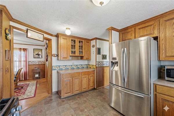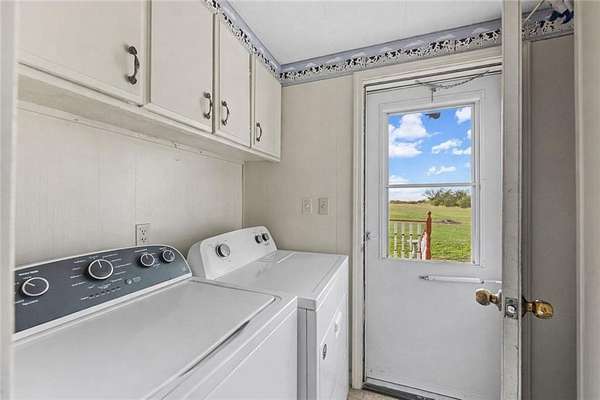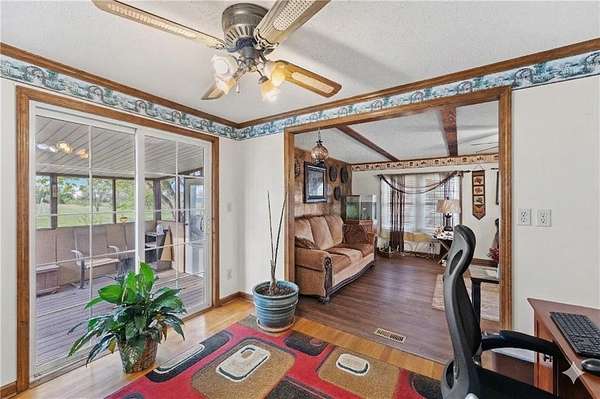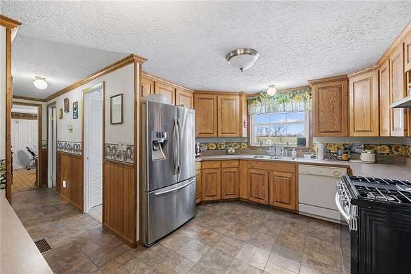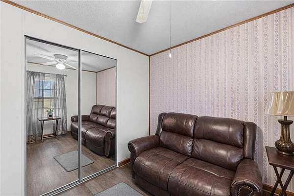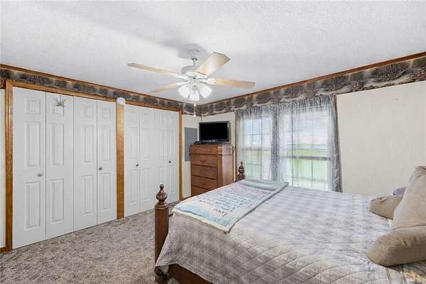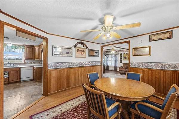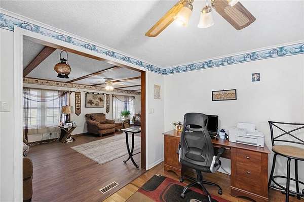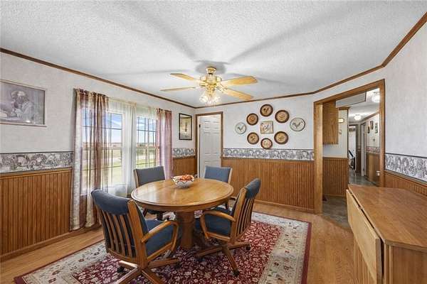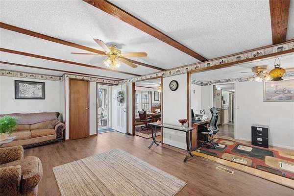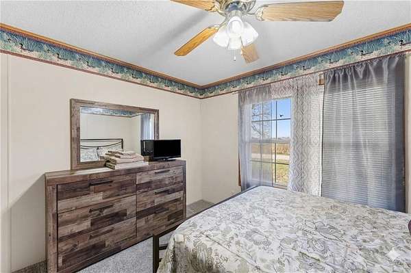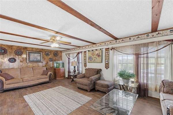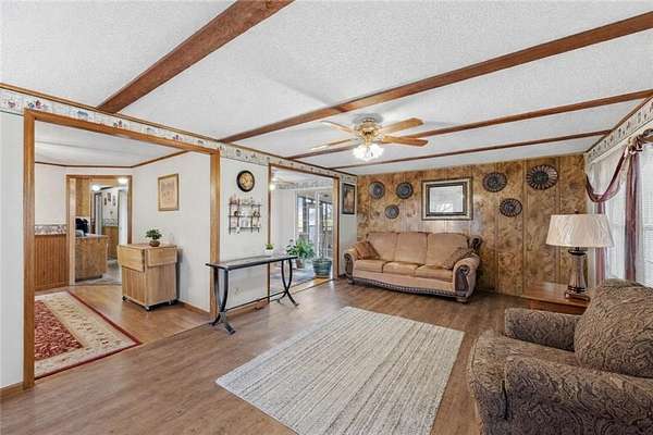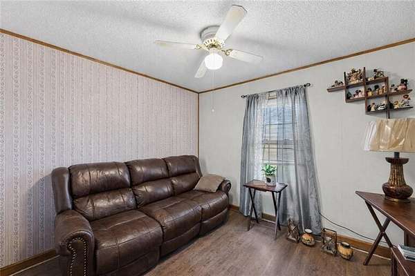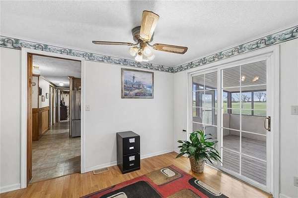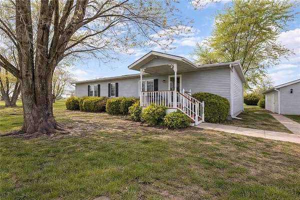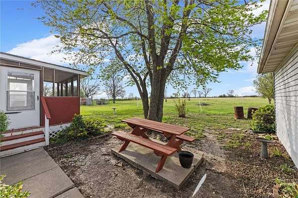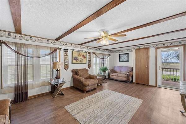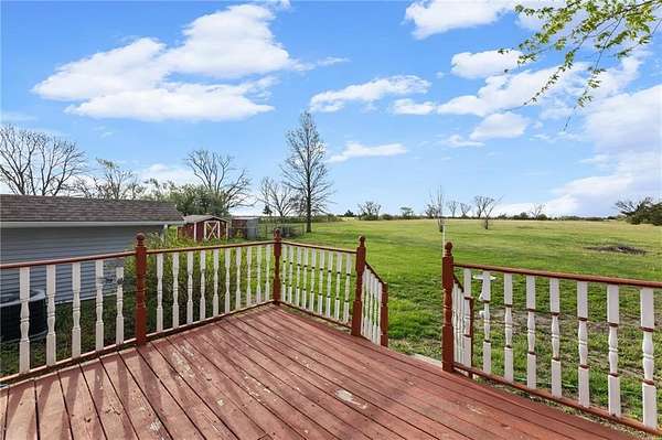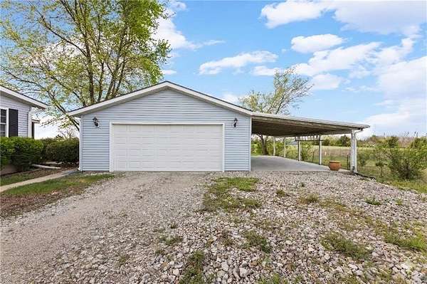 Great "mini farm" setup on 7.9 acres just 1/2 mile off Hwy 59! Roomy 3BR manufactured home featuring large living area, formal dining, spacious kitchen with tons of cabinet/counter space, separate office, screened-in porch, and full basement with finished family room plus unfinished storage/workshop area. Detached 2-car garage, attached 2 car carport, hay/farm building, additional storage, partial fencing for animals, and brand new septic lagoon. Property is being sold as-is and is ideal for buyers looking for acreage, outbuildings, and the chance to add their own personal touches while building sweat equity in a convenient country location.