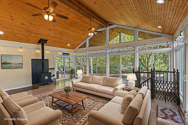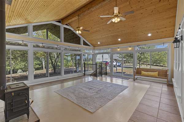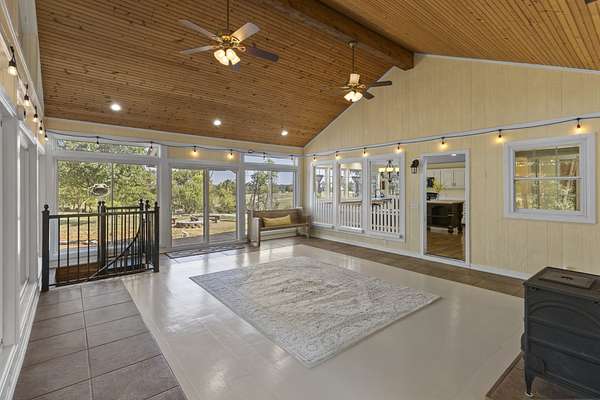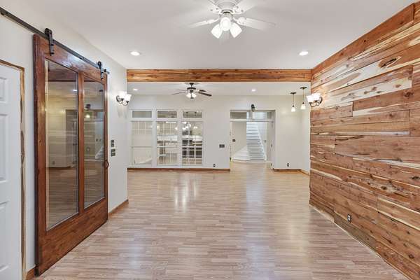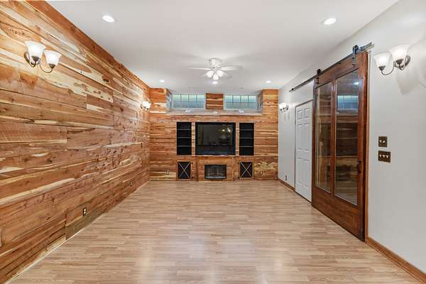 Beautifully renovated farmhouse north of town with custom finishes and charming country appeal. This spacious three-level home is perfect for large families and large gatherings and offers distinctly separate spaces, ideal for multigenerational living. The main level features an oversized kitchen with quartz countertops, custom cabinetry, and plenty of natural light. The sunroom right off the kitchen has vaulted ceilings and large 6-foot windows that overlook the spacious and private backyard. Two wood-burning fireplaces on the main floor add warmth and character, making the home cozy during the colder months. The basement offers 10-foot ceilings, a second full kitchen, a bedroom, an office, and a large living area. With its own set of appliances and living spaces, this level is perfect for guests, extended family, or rental potential. Outside, the property is designed to enjoy the natural surroundings. Beautiful landscaping, multiple porch swings, and walking trails create the perfect setting to unwind. Less than 3/4 of a mile away, the Cumberland River wraps around the area, attracting local wildlife and adding to the property's serene atmosphere. The detached garage/barn is a standout feature on this property. This impressive 40x60 heated and cooled building includes 12-foot ceilings, four garage doors (including two 12-foot drive-through doors), a 60x32 loft with 8-foot walls and a 12-foot peak, plus a 25x60 covered awning with concrete flooring on both sides--ideal for storage, hobbies, or business use. This property is one of a kind and a must see!