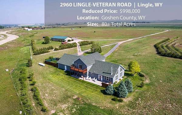 Located southwest of the town of Lingle, Wyoming and overlooking the North Platte River valley is this gorgeous 3 bedroom, 3 bath home. The main floor includes a spacious, wide open floor plan that ties the open family room, dining area, and kitchen all into one comfortable room. The main floor also offers a laundry area, a second bedroom and the primary bedroom with a walk-out into the back yard patio area, walk-in closets, and a connected bathroom with a walk-in shower and a jetted tub. The upper level of the home offers a loft area that overlooks the main floor along an open living room, a 3rd bedroom and bath and a 2nd level deck that provides the perfect area to enjoy the stunning views of the valley. Rounding out the upper level is the area above the garage that is rough finished but could easily offer room for 2 additional bedrooms. This home also offers an attached 2-car garage that has heated floors, a heated reloading/work room, and indoor dog kennels with access to outdoor runs. Also located on this 80-acre property is a 2880 sq. ft. shop that offers a finished bedroom and 3/4 bathroom, a beautifully finished "man cave", and a shop area that is fully heated with a new propane heater. If you own an RV, the hook-up is in place and ready for you to park it. Bring your horses and either corral them in the runs with attached loafing shed or turn them out to graze in the fully fenced 80 Acre grass pasture.