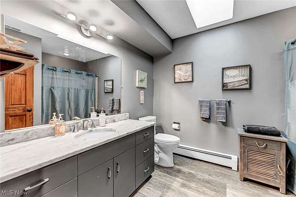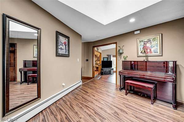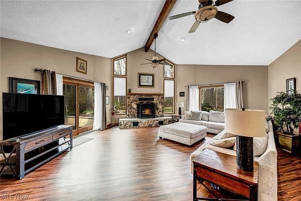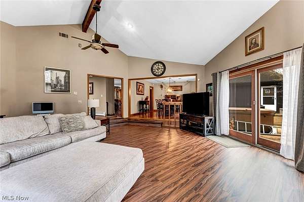 Sprawling ranch offering true one-floor living on a private 2.6-acre wooded setting in the Mill Gate Estates neighborhood of Willoughby Hills, located within the Cleveland Metroparks North Chagrin Reservation, complete w/ a welcoming front porch & a backyard oasis w/ a patio, hot tub & water feature. This home features a spacious, light-filled layout enhanced by skylights & vaulted ceilings, 6 bedrooms, 2.5 baths & over 3,653 sq ft of flexible living space, including a separate wing w/ 1 bedroom & a versatile bonus space w/ a vaulted ceiling, ideal for extended living, recreation, a home gym, or a potential in-law or teen suite. A beautifully updated eat-in kitchen includes engineered hardwood flooring, stainless steel appliances, a double oven, soft-close cabinetry, granite countertops, pantry, a 9-ft island w/ breakfast bar & a comfortable dinette area. A great room showcases vaulted ceilings, a striking stone fireplace & access to the back patio, while opening to a formal dining room. The primary suite offers a luxurious retreat w/ a generous walk-in closet & newly remodeled en-suite bath w/ custom tile & glass walk-in shower w/ dual shower heads. Two additional bedrooms include walk-in closets. A spacious laundry room & attic storage w/ two access points spanning the home add everyday convenience. A shed & chicken coop complement the outdoor space, while an attached 2-car garage & whole house generator add to the home’s functionality & peace of mind. RECENT UPDATES include: Remodeled kitchen & installed engineered hardwood flooring (2019), remodeled master bath (2022), replaced A/C blower (2025), septic UV sterilizer (2026) & aerator (2024), generator mother board (2024) & starter (2026), installed LVP flooring (2026), rebuilt chimney (2019), and much more. INCLUDED are ALL kitchen appliances, hot tub, patio table, TVs & mounts in kitchen & master bedroom, and all window treatments. This home is a must see!