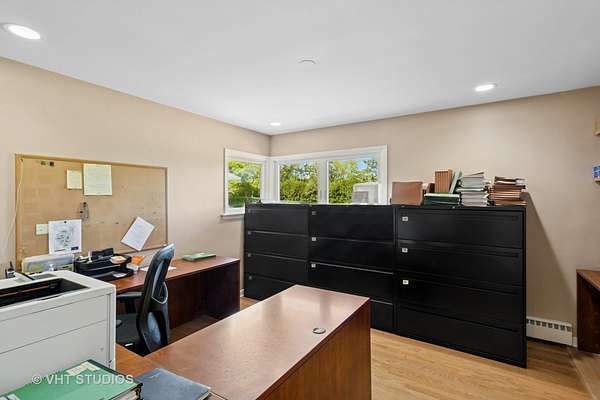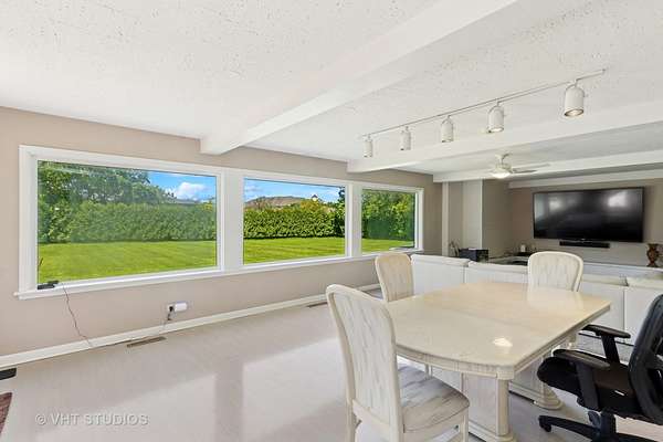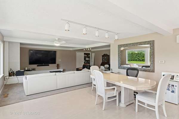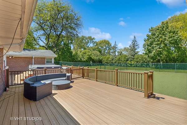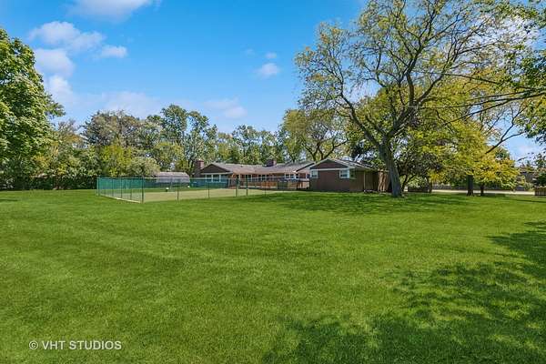 Tucked away on nearly 2 acres of peaceful, partially fenced land in Northbrook, this spacious 3 bedroom, 2.5 bathroom brick ranch offers space and comfort in a serene setting! Set far back from Willow Road, the home welcomes you with a sun-filled layout featuring a modern all-white kitchen with granite countertops and sleek black hardware. The massive primary suite includes a walk-in closet, an attached dressing room and a steam shower in the primary bathroom. Zoned heating for added comfort. Incredibly large deck overlooks the expansive yard for endless outdoor enjoyment with a unique fenced 80x40 area with Star Pro Greens Astro Turf which is easy to clean and phenomenal for dogs. A rare opportunity for space and tranquility, just minutes from town conveniences!