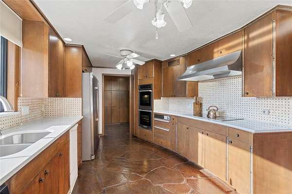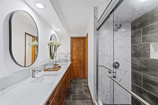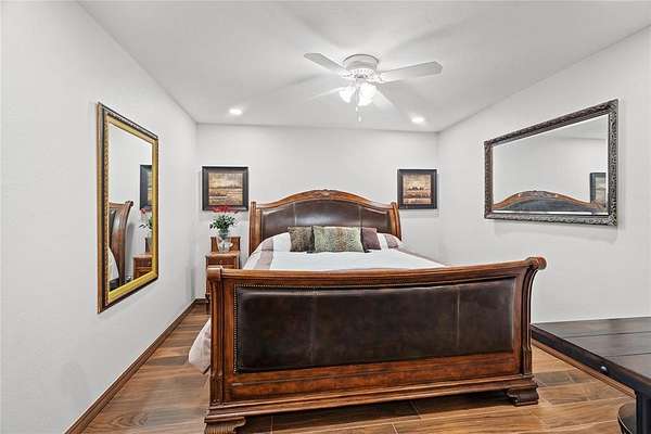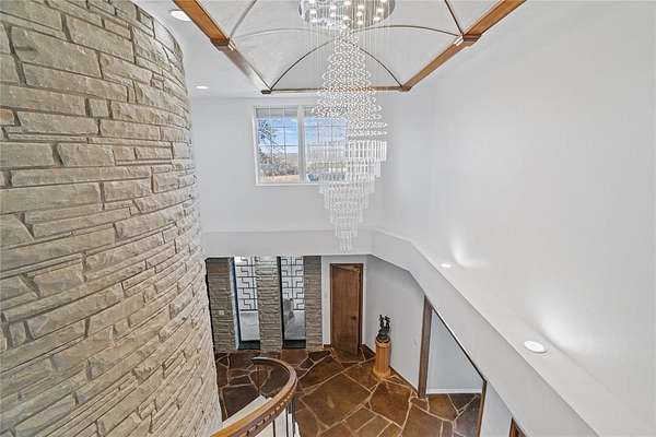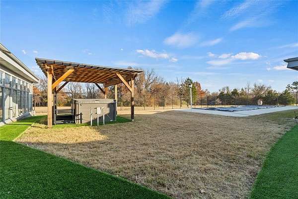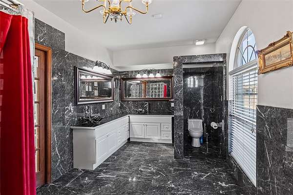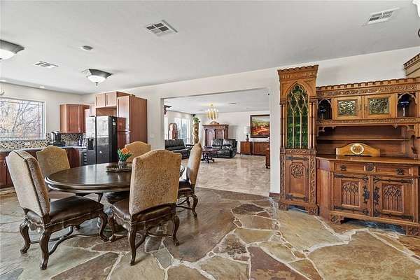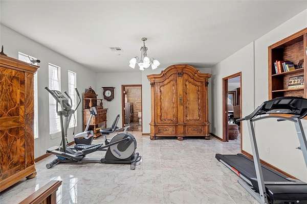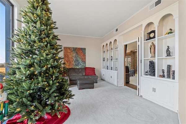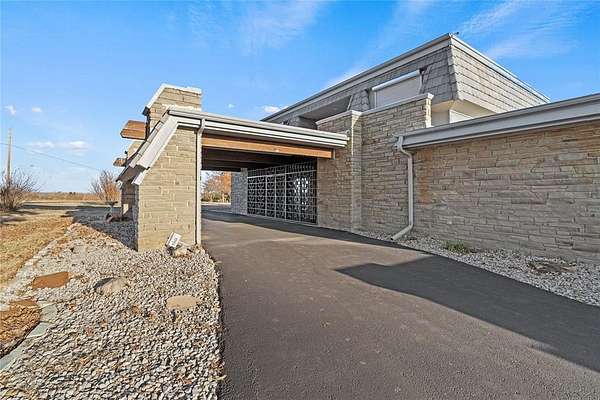 Step into a world of architectural splendor & timeless elegance with this Frank Lloyd Wright-inspired estate, offering nearly 8,000sqft (MOL) of meticulously crafted living space. Built in 1969 & thoughtfully expanded, this residence seamlessly blends mid-century modern design with luxurious amenities, creating a one-of-a-kind home that caters to both comfortable multigenerational living & grand entertaining. As you approach, a curved driveway & porte cochere set the tone for the grandeur within. You are welcomed w/a two-story foyer featuring a spiral staircase, leading to a library & great room with custom built-ins, wood-burning fireplace, & views of the solarium-a lush indoor greenhouse perfect for year-round gardening. Adjacent is a private bar room, ideal for entertaining! The NE wing of the home is dedicated to shared spaces, including a kitchen that serves as the heart of the home. Boasting a unique curved design, original cabinetry, quartz countertops, & walk-in pantry, it flows seamlessly into the formal dining, which is enveloped by the striking stone walls of the grand staircase. The SW wing of the main house hosts 4 spacious bedrooms, each with ensuite baths & ample closets. The primary suite offers a private office/sitting area, ensuite bath w/ dual vanities, & cedar closet. Upstairs, you'll find versatile bonus spaces, including a potential bedroom w/a ensuite bath & a NEW rooftop observation deck that delivers breathtaking views of Downtown OKC, Tinker AFB, & stunning Oklahoma sunsets. The connected 2,600 sqft guest wing is a haven of its own. Designed for harmonious co-living, it features a second kitchen, dining & living areas, a large primary suite w/a walk-in closet & ensuite bath, a flexible second room, and 2 full baths. With a separate entrance, it's perfect for multigenerational living or private guest accommodations. The outdoor experience is equally remarkable, with 5 sprawling acres, a heated saltwater pool, swim-spa, & a 30x40 shop.
