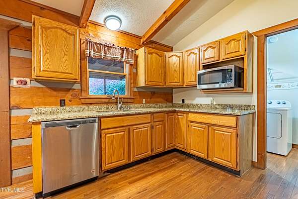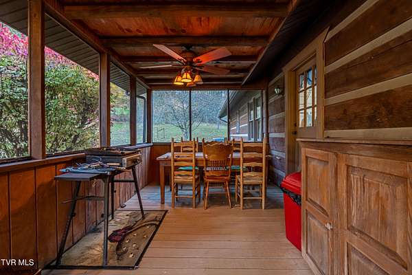 Breathtaking Log Cabin Retreat nestled on eighteen private acres in the beautiful mountains of Southwest Virginia, minutes from Emory and Henry University and I81, yet privately situated out in the country. This custom built, one owner paradise features three bedrooms, three full bathrooms, three massive wood burning stone fireplaces, hardwood floors, vaulted ceilings, exposed beams, stone sidewalks, and two large screened in porches. Come feel as one with nature enjoying the views of your mesmerizing pond on a warm fall day or watch the snow fall and turn it into a magical winter wonderland. This gracious home is complete with Horse/Cattle Barn with Loft (36 x 31 and 13' Vaulted Height), another small barn, two outbuilding and dairy. There is no shortage of storage space here. This perfect mini farm with a mixture of pasture and woods is ready for endless adventures. Bountiful deer are no surprise around this beauty during the quiet hours of the evening. Relax, rest, sit back on the screened in porch in your favorite rocker, and listen to the sounds of tranquility. You are home.