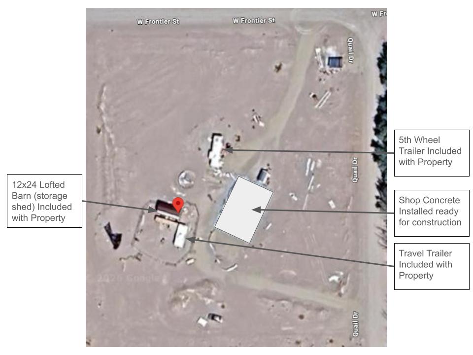 A concrete pad is already poured for a future shop (approximately 40' wide x 56' deep x 16' tall), and the steel shop building materials are on-site and ready to assemble.