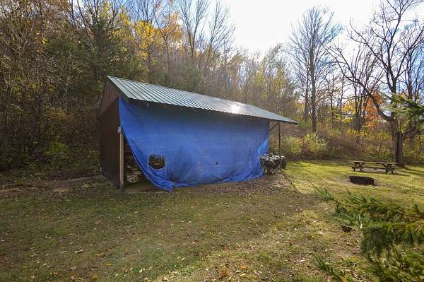 Over 12.5 acres halfway between Richland Center and Muscoda offering a wonderful building site. The acreage is mostly wooded with groomed trails. A campsite area has been in use for several years with active electricity and well. Buildings include a yard shed and a 16'x32' open building good for covered parking, etc. There is an older RV included if desired. Find your way up the trail to the top of the hill where tranquility awaits. Great deer hunting conditions, rock outcroppings, healthy woodland, abundant berries...features of this property are many. Schedule your private showing today.