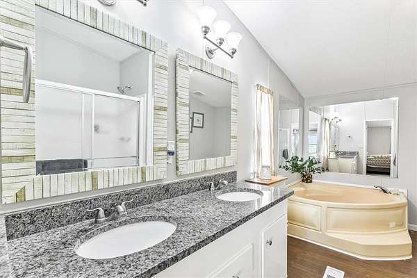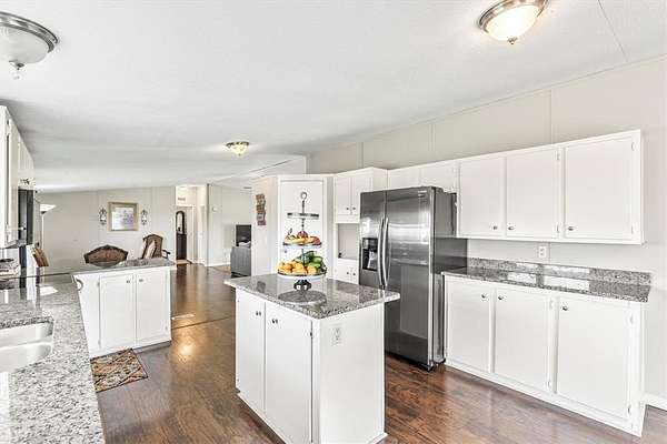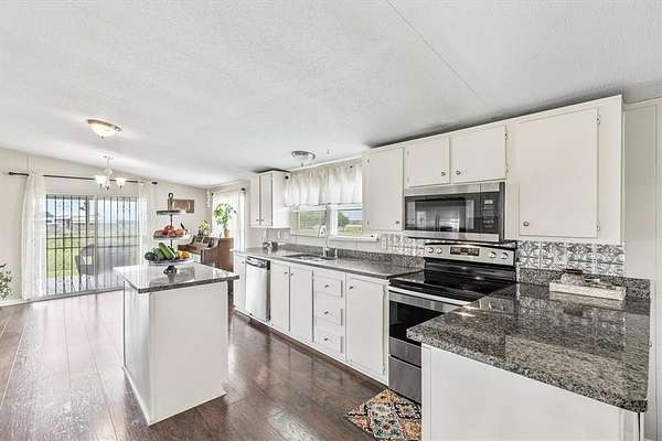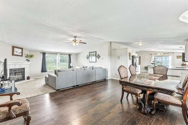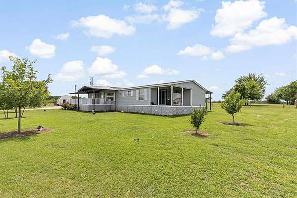 Discover peaceful country living on 5 beautiful acres in Lone Oak! This spacious 4-bedroom, 2-bath manufactured home offers over 2,000 sq ft of comfortable living space with a bright, open floor plan and stylish updates. The spacious kitchen features granite countertops, a convenient island, walk-in pantry, built-in cabinets, and an eat-in breakfast area. The oversized dining and living rooms are perfect for entertaining, complete with a cozy wood-burning fireplace and luxury vinyl plank flooring. The private primary suite features a walk-in closet and ensuite bath with dual sinks, granite counters, a garden tub, and a separate shower. Secondary bedrooms are generously sized, each with ceiling fans, and share a full bath. Outside, enjoy the wide-open space and added functionality: a 12x12 chicken coop, 12x24 stall, 16x16 storage building, and a 4-year-old electrical box already prepped for a future workshop. Covered front and back decks provide the perfect spots to relax and take in the views. The property is fully fenced and gated with open pasture, making it ideal for animals or a hobby farm. Recent updates include a new AC unit (approx. 1 year old). Located outside city limits with no known restrictions--bring your animals and your vision!