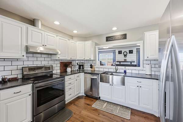 - Dishwasher, Disposal, Microwave, Oven, Range, Refrigerator, Self Cleaning Oven, Vented Exhaust Fan