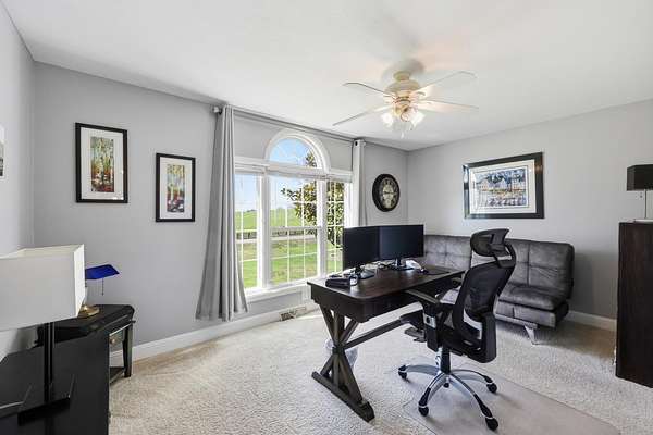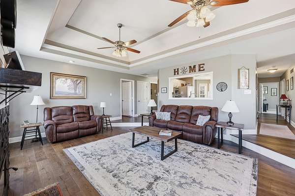 Do you need that piece of heaven yet only minutes from town? This is it! Peaceful and serene definitely describe this beautiful property located on the west side of Boyle County. Beautiful dark hardwoods greet you in the front entry hall leading back to the open great room with trayed ceilings and a wood burning fireplace, oh so cozy! The primary sits just off the great room with yet another tray ceiling and a very well appointed bath with lush dark cabinetry, soaker tub, separate shower, walk-in closet and beautiful tile flooring. Entertaining is made easy with the open kitchen space and separate dining spaces all looking into the great room. Two separate nicely sized bedrooms and guest bath are on the opposite side of this beauty as well as a separate office space or space for workout equipment. Are you thinking...I needed this to have a basement? We have a fully floored attic space with a full bath rough-in. You could have almost another 900 square feet upstairs if you need more space or just great storage! Let's step outside... A massive fully stocked fishing pond awaits and a storage shed for your gardening and mowing needs. Relax out front on the lawn or your front porch to some of the most beautiful Boyle sunsets in the evening. Do not wait on this one...set up your private showing today!