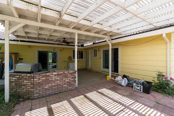 Welcome to this charming home ranch - style in Merced, offering a perfect blend of comfort and functionality. Sprawling state over 1,848 square feet, this residence features 3 spacious bedrooms and 2 full bathrooms. The heart of the home is the kitchen, seamlessly integrated into a kitchen/family room combo, providing a versatile space for both daily living and entertaining. Enjoy meals at the breakfast bar or in the designated dining area within the family room. The home is equipped with Central AC and Central Forced Air heating, ensuring year-round comfort. The flooring throughout the house is designed for both style and durability. A cozy fireplace adds warmth and ambiance to the living space. Practical amenities include a 2-car garage converted in private living unit permits unknown. Located within 6 mins to Merced University, this home offers Additional rear unit permits unknown This two level unit ensures privacy for both guess or tenants. With a generous lot size of approximately 75,829 square feet, with plenty of almond trees, space for horses and outdoor living, solar panels a smart and essential investment now this days. This home is on a natural gas (one of a hand full in this area) Covered patio with brick outdoor type kitchen BBQ and much more worth look to explore