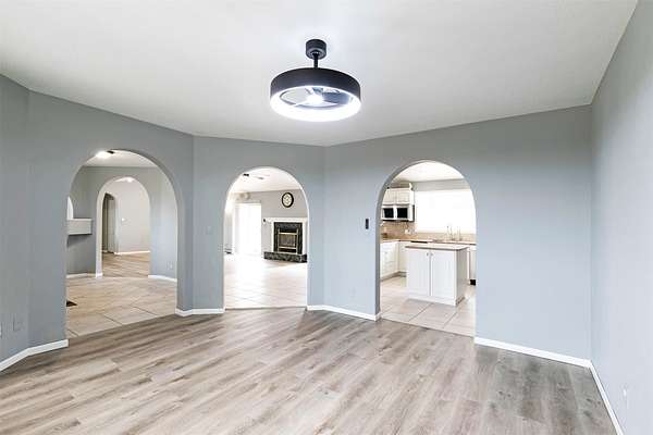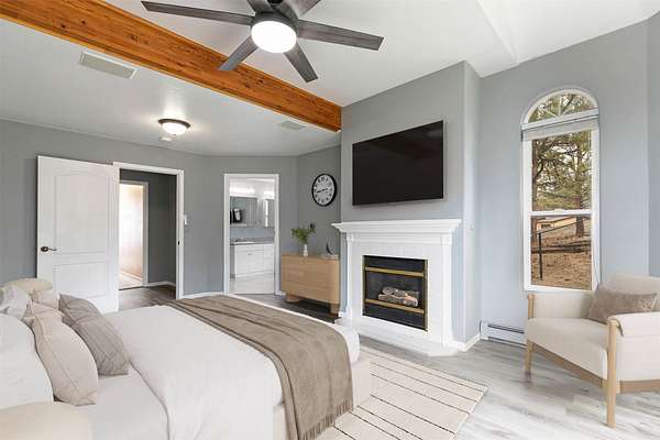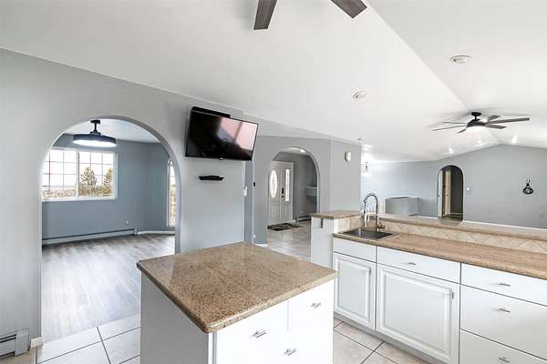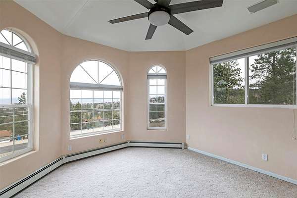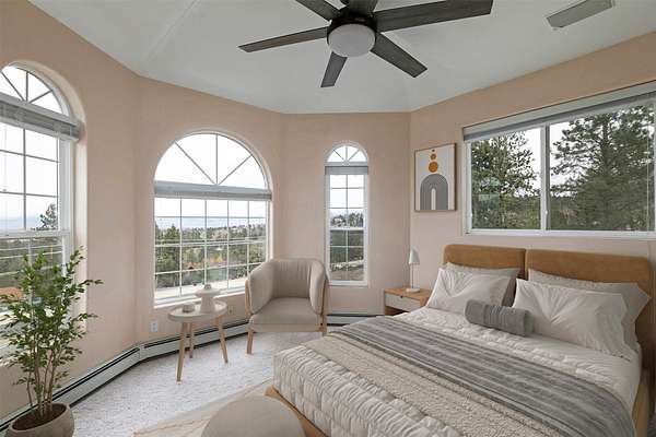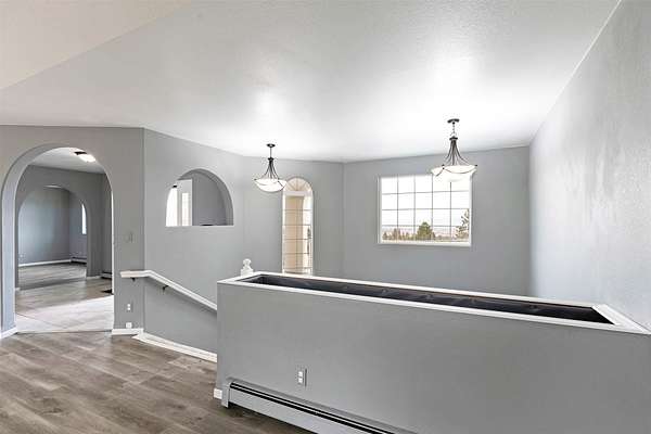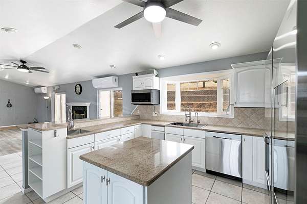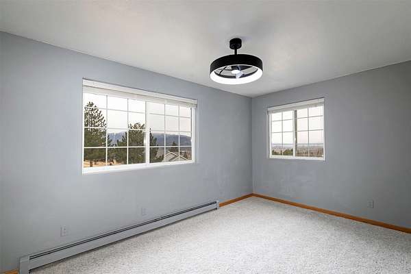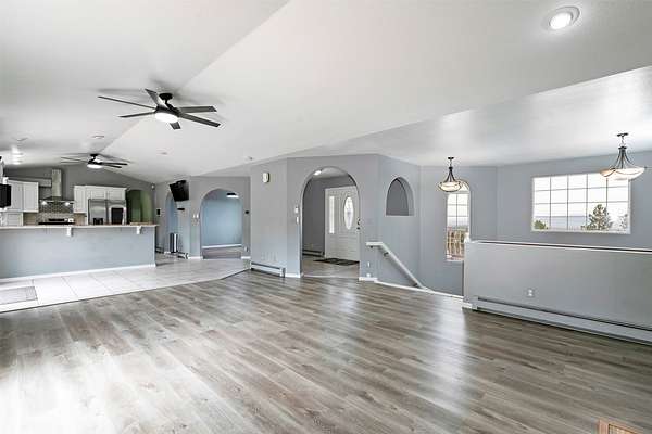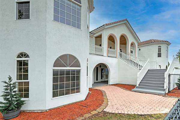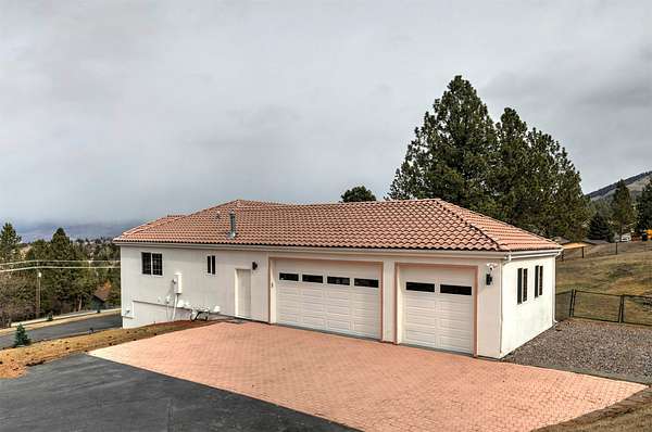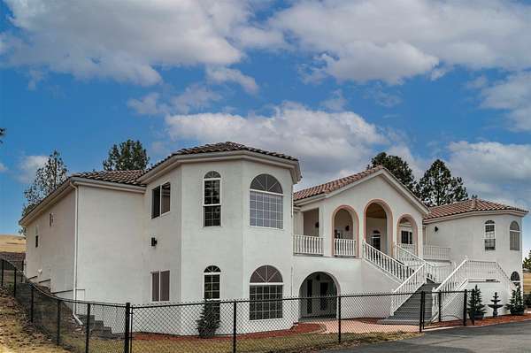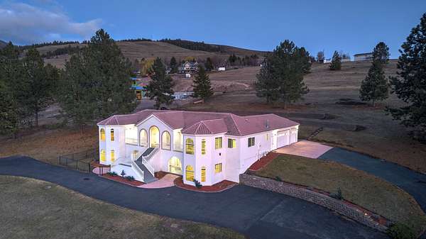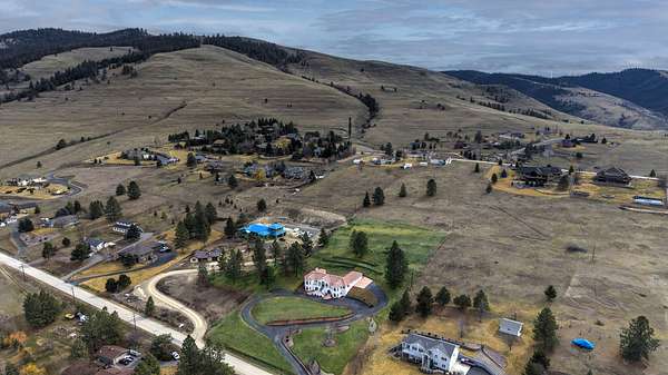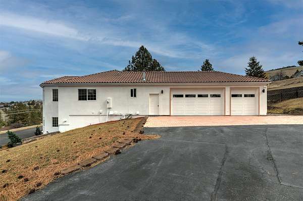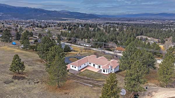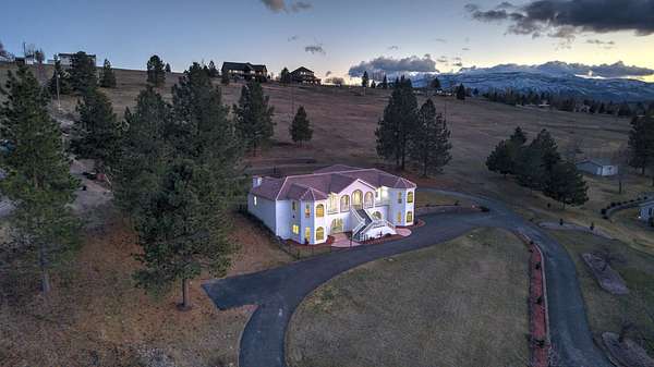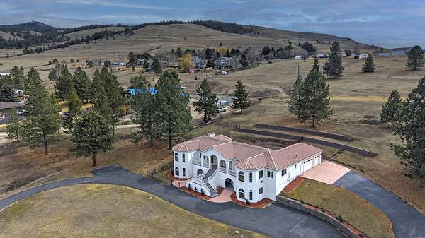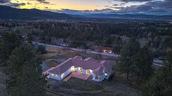 This spacious Spanish Mediterranean style home embodies high end Montana living with timeless architecture, exceptional craftsmanship, and breathtaking views of the surrounding mountains and Missoula Valley. Offering 6 bedrooms, 5 bathrooms, and over 5,500 square feet of well designed living space, the home provides both comfort and elegance on 2.54 beautifully landscaped acres. Classic Spanish design elements are showcased throughout the property, including terracotta roof tiles, graceful arched doorways, and large arched windows that fill the home with natural light while framing expansive valley views. A sweeping driveway lined with solar powered lights leads to the grand entry, where high ceilings and an open concept layout create a bright and inviting atmosphere. Smart home climate control adds modern convenience. The main gourmet kitchen features smart appliances, custom cabinetry, and a large center island, making it ideal for entertaining and family gatherings. The main level also includes an elegant primary suite with private patio access, a walk in closet, a spacious dressing room, and an ensuite bathroom with a soaking tub. The east wing offers a private office with incredible views and a half bathroom, while the west wing includes two additional bedrooms, a bathroom, a laundry room, and a heated three car garage with built in workbenches. The lower level features a private entrance and separate living area ideal for guests, complete with a fitness center, gourmet kitchen, and living room. Additional bedrooms, a second primary suite, bonus rooms, and a utility room provide flexibility and privacy. Outdoor living is just as impressive, with a private back patio perfect for summer evenings and a front balcony offering stunning sunsets. Located on a quiet cul de sac in the desirable Upper Miller Creek neighborhood, the home is just minutes from schools, golf courses, shopping, dining, and outdoor recreation.