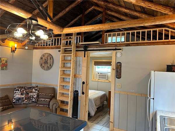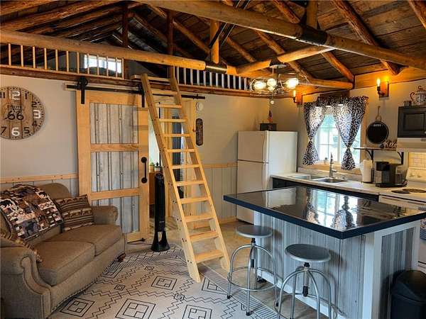 Escape to the cute and cozy cabin with 200 feet of lakeshore - the perfect weekend retreat just over an hour from the Twin Cities. This fully furnished property is move-in ready and has been updated for minimal upkeep, with all featuring durable new win vinyl siding and a metal roof for easy maintenance. Inside, you'll find a comfortable layout with a open kitchen/living room area with vaulted ceiling. One bedroom and one full bath, plus loft area that provides additional sleeping space - perfect for hosting family and friends. Relax on the screened in porch overlooking the spacious yard and enjoy peaceful lake views. The large fenced-in yard offers two gate openings - a convenient walk-through gate plus a double swing gate off of the driveway, ideal for pulling in vehicles, boats, or ATVs and secure in the locked fence. Additional features include baseboard heat for extended seasonal use and a storage shed that houses the well pressure tank and water heater. Perfectly located near the Gandy Dancer Trail, close to town, a golf course, and ATV trails, and right across the street from Round Lake Beach - this property offers the ideal balance of recreation and convenience. The adjacent property is also for sale, MLS # 7028521
