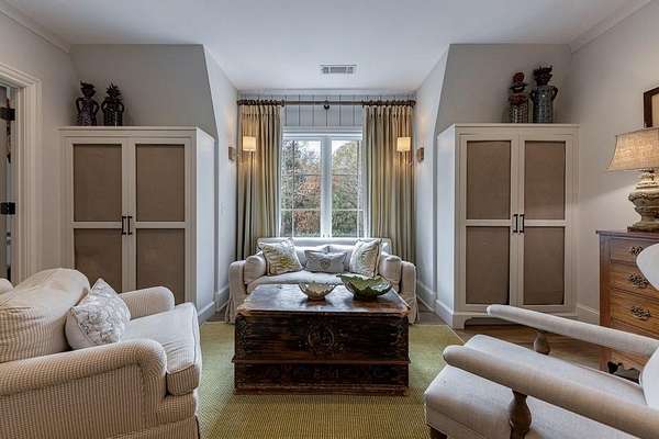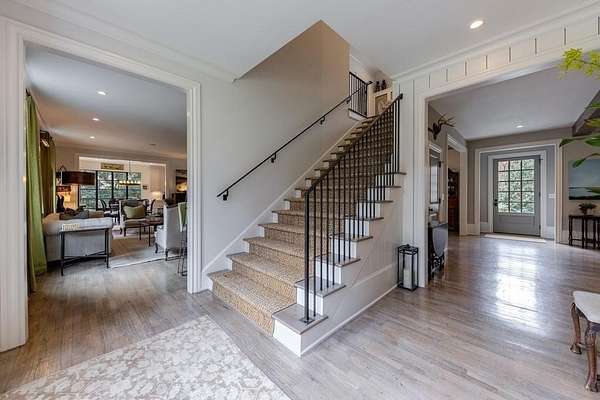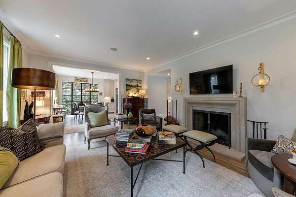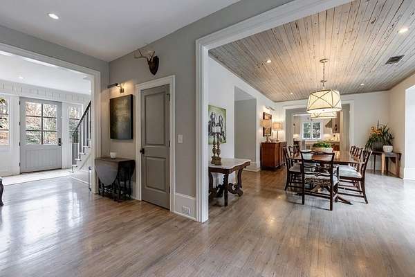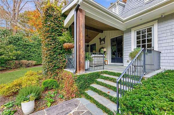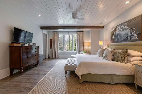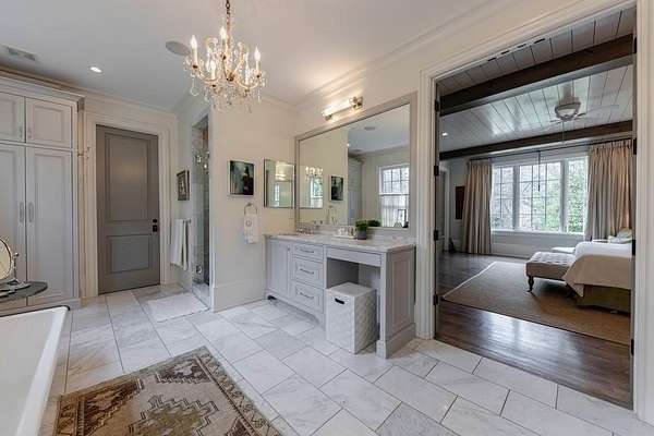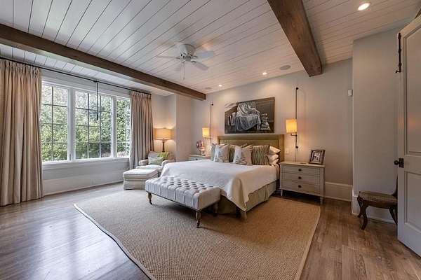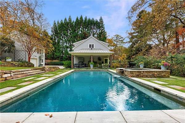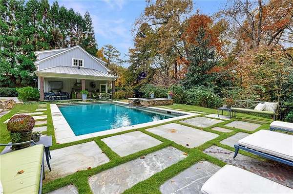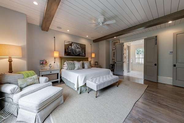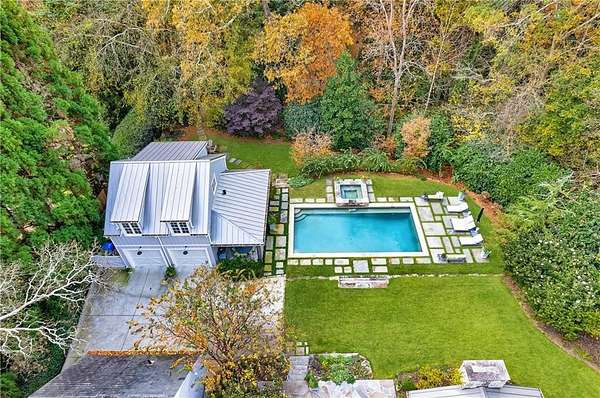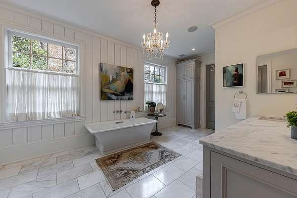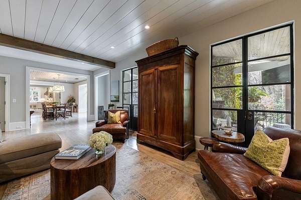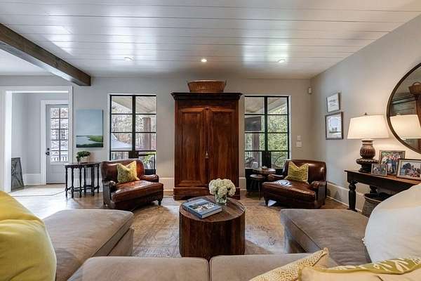 Truly charming, this original Clement J. Ford-designed home sits on a private 2+/- acre retreat, offering timeless architecture paired with modern luxury. Warm architectural details such as shiplap walls, exposed wood beams, and iron windows blend seamlessly with modern upgrades, preserving the character of this beautiful older home while elevating it with today's luxury finishes. Thoughtfully renovated by David Siegel, the residence features expansive living spaces on the main level, including living room, den, dining room, light filled kitchen that opens to the breakfast area and a spacious primary suite conveniently located on the main floor. There is also a private guest suite on main with an e-suite bath. Upper level staricase leads to an open bonus room, perfect for an office, kid's play area, there are three spacious bedrooms with 3 full baths. The current owners have further enhanced the property with the addition of a detached two-car garage complete with finished space above-ideal for a guest suite, office, or studio. Outdoor living is exceptional, highlighted by a resort-style pool, outdoor kitchen, covered porch, and a private tennis court-creating the perfect setting for entertaining and everyday enjoyment. Set far back from the street behind a double-gated driveway, the home offers both privacy and abundant parking. A rare opportunity to own a thoughtfully updated classic with space, privacy, and exceptional amenities.