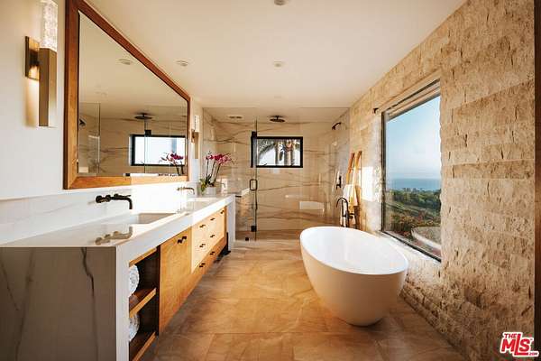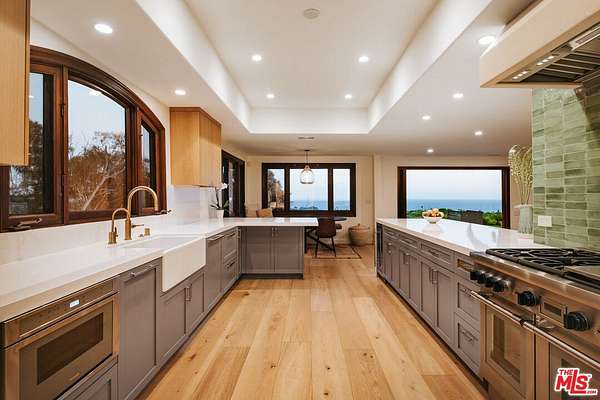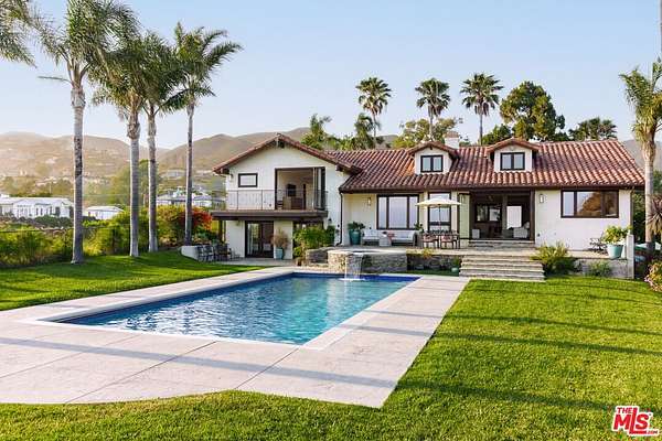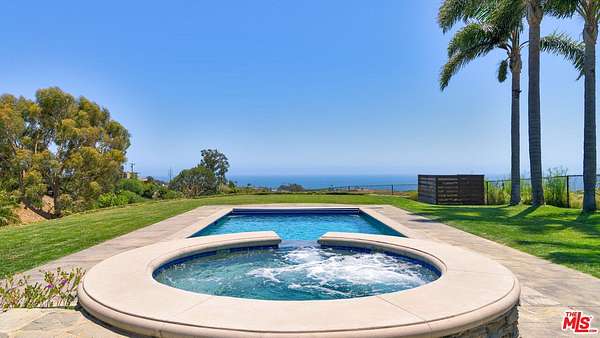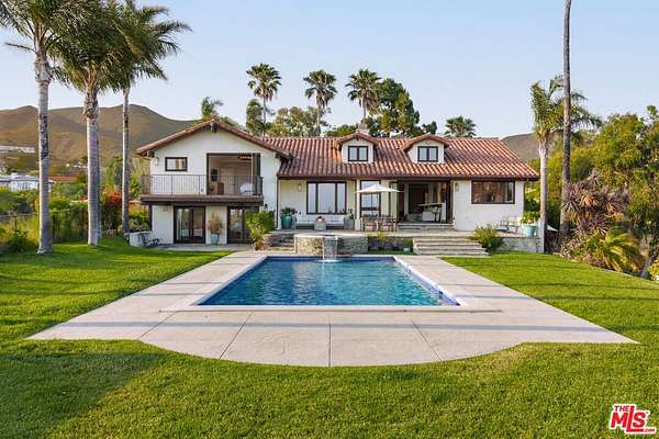 Set atop a private, elevated rolling knoll in prestigious Malibu Park, this reimagined and romantic Modern Mediterranean estate offers elevated coastal living on over two park-like acres of fully usable land with unobstructed ocean views and exceptional privacy. This is a rare opportunity to own a legacy estate that defines luxury coastal living in Malibu. A long, tree-lined driveway leads to a beautifully renovated 4,898 sq ft main residence, showcasing wide-plank white oak floors, custom cabinetry, and a sunlit open-concept layout. The designer kitchen features quartz countertops, brand new appliances and sweeping views of the Pacific. Indoor living spaces flow effortlessly to a covered heated terrace, sparkling saltwater pool, and manicured lawn. The home offers 5 bedrooms and 6 bathrooms across three structures, including a 1,100 sq ft guest house with expansive ocean views, a sun-lit deck off the main bedroom, vaulted ceilings, two brick fireplaces, full chefs kitchen, and a lower level featuring a large bonus room and full bath ideal for extended stays or a private office. A separate 500 sq ft studio offers additional flexible space for a theatre, creative work or wellness. Outdoors, California native landscaping surrounds the property, with sycamore, oak, fruit trees, coastal sage, adding natural beauty and privacy. A vine-draped pergola, tiered fountain, and ocean-facing lounge areas create the ultimate setting for entertaining and relaxation. Additional upgrades include a full-house generator and whole-house water filtration system. Located minutes from Zuma Beach, Malibu schools, and scenic trails, this one-of-a-kind estate is the perfect blend of luxury, nature, and modern California living.