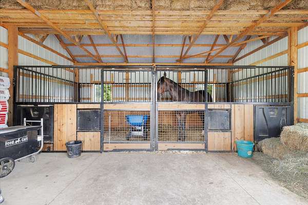 Welcome to this one-of-a-kind 2-bedroom, 1-bathroom open-concept home, perfectly situated on 3.3 acres of peaceful countryside. From the moment you arrive, you'll be greeted by a custom, one-of-a-kind paved entryway that sets the tone for the charm and character of this property. Step inside and enjoy the seamless flow of the open-concept living space-airy, and ideal for both everyday living and entertaining. Outdoors, the possibilities are endless. The property features outbuildings designed for horses or livestock, along with lush green pastures that provide both beauty and functionality. An additional outbuilding offers ample storage, perfect for equipment, hobbies, or future projects. Whether you're seeking a home, a hobby farm, space for your animals, or simply a private retreat surrounded by nature, this property delivers. With its thoughtful details and rare combination of features, it truly is a one-of-a-kind find in Mount Perry.