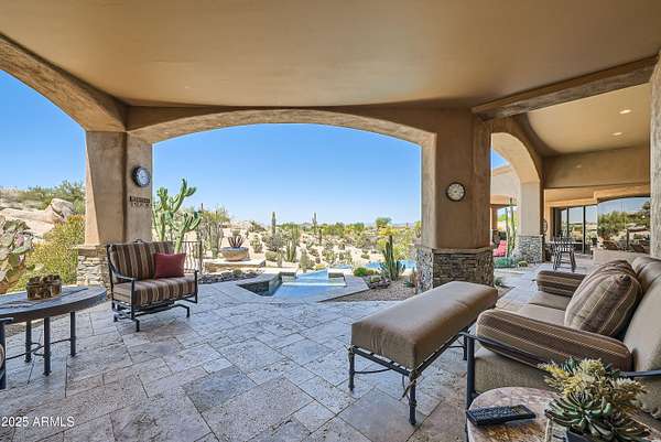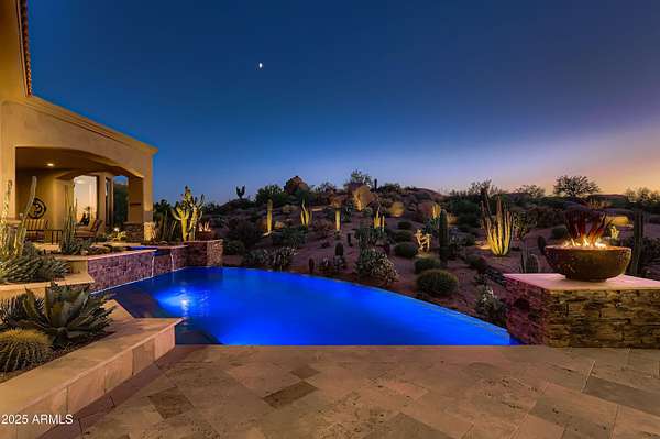 Unparalleled golf course living. Stunning ~5300 sq ft Troon North Estate. 1.6 acres of breathtaking, panoramic views. Scottsdale living elevated! Prestige & luxury meet Nature. Meticulously updated indoor-outdoor living. Pavestone driveway leads to split floor plan. 2 spectacular retractable walls of windows blend interior & desert vistas. Grand, open living room, formal dining, butler's pantry & wine storage. New wood flooring throughout, entertainer's kitchen, new counter/tile. Asko, Dacor, Sub Zer0 Viking appliances. 4 bedrooms + office, 4.5 baths. Spa-like Primary Suite retreat w/sitting area. Bonus Office and billiards room. Putting green in 1 of 4 garage bays! Private oasis with negative-edge pool & spa. Expansive resort patio, Fire Pit & BBQ. Living that inspires and rejuvenates