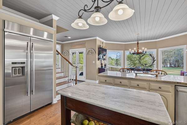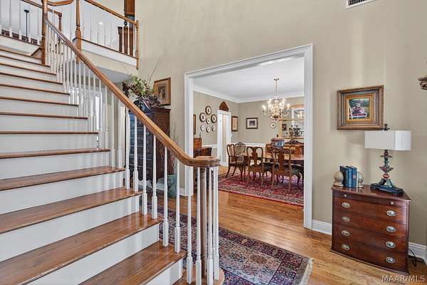 This stunning southern traditional brick home at 297 Milly Branch Court in Pike Road offers the perfect blend of elegance, comfort, and privacy on a beautifully wooded lot with breathtaking private lake views. Boasting 5,588 square feet of living space, the home features 4 bedrooms, 3 full baths, and 2 half baths, along with three fireplaces and a super-sized bonus room ideal for a home theater, playroom, or additional living space. The thoughtfully designed floor plan flows seamlessly for entertaining, highlighted by a butler's pantry, a gourmet kitchen with Jenn-Air appliances and lake views, a bright breakfast room overlooking the grand lawn and a dining room. Hardwood floors, plantation shutters, and abundant natural light fill the main level, while built-in bookshelves and a striking fireplace create a warm focal point in the living room. Separate den or office and large owners' suite (with private deck) are favorite features. It is all about the views with a tree lined grand lawn leading directly to the lake - giving you the feeling of being tucked away at a resort. Additional highlights include a new roof, HVAC units replaced within the last five years, an encapsulated crawl space, a convenient laundry room with sink, and a 3-car garage. Step outside to enjoy expansive porches and decks with serene lake vistas, a floating pier, and direct boat access. Tucked away for ultimate peace and privacy yet conveniently close to the interstate, this exceptional property is truly one of a kind.