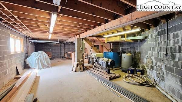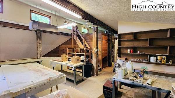 This 4166 sq ft building is steeped in character and history, offering an extraordinary canvas for transformation. Built in 1977 as a pottery studio and sign making shop, it still carries its artisan roots including a large kiln on site, ready for use. The post and beam construction is a centerpiece, featuring reclaimed beams from a former fertilizer factory in Georgia. Some of these timbers measure an impressive 11' x 16" and are believed to be clear heart pine, a wood renowned for its durability and rich grain. Both the interior and exterior are clad in cypress, adding warmth and natural beauty to the structure. With its expansive open spaces, the building provides a perfect template to be remodeled into a one of a kind mountain home. The large beams and open framework lend themselves to custom layouts, whether you envision a rustic retreat, a modern mountain lodge, or a blend of both. Set on approximately 5.65 total acres, the property includes a .72 acre building lot, (separate PIN #) allowing flexibility for future investment or selling it separately. And also a beautiful level field that could be perfect for gardens or anything permitted by the town. Its location on one of Banner Elk's original historic roads ties the property to the area's past, while the surrounding High Country landscape offers endless recreational and lifestyle opportunities. This property is more than just a structure, it is an opportunity to craft a home as unique and enduring as the materials it was built with.