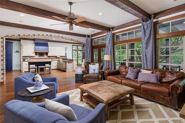 This 4,355 sq ft home offers space, comfort, and style with 5 bedrooms (2 downstairs, 3 upstairs), 5 bathrooms, 2 living areas, and 2 dining areas - perfect for both everyday living and entertaining. A stunning home office featuring abundant built-in storage to keep everything organized and within reach. With the versatility of different rooms throughout the house, everyone has a space to call their own. Beautiful wood details throughout add warmth and character, while large windows bring in plenty of natural light. The backyard is a standout, featuring a sparkling pool, open space, and room to relax or host. Set on 1.68 private acres, this property offers a great balance of privacy and functionality. Tucked away in The Ridge this home provides privacy and community - ready to welcome you home.