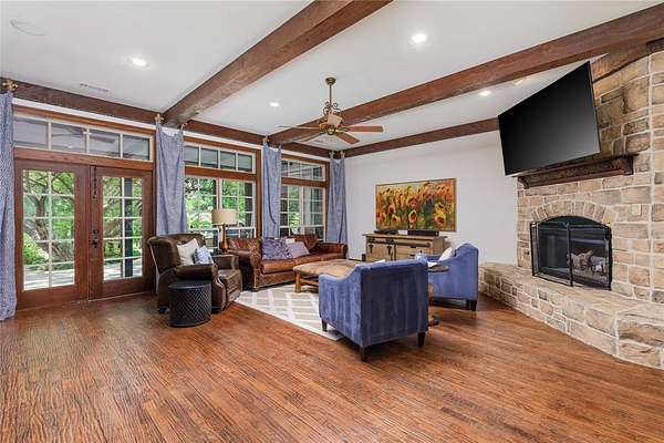 Through NO fault of the Seller, the house is back on the market! This 4,355 sq ft home offers space, comfort, and style with 5 bedrooms (2 downstairs, 3 upstairs), 5 bathrooms, 2 living areas, and 2 dining areas - perfect for both everyday living and entertaining. A stunning home office featuring abundant built-in storage to keep everything organized and within reach. With the versatility of different rooms throughout the house, everyone has a space to call their own. Beautiful wood details throughout add warmth and character, while large windows bring in plenty of natural light. The backyard is a standout, featuring a sparkling pool, open space, and room to relax or host. Set on 1.68 private acres, this property offers a great balance of privacy and functionality. Tucked away in The Ridge this home provides privacy and community - ready to welcome you home.