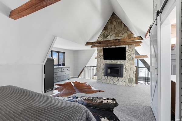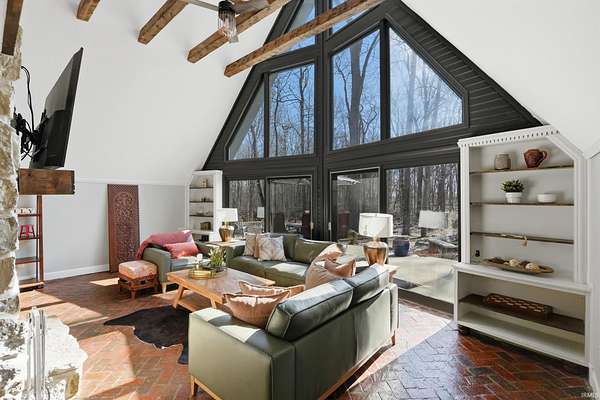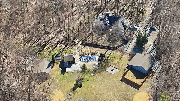 Tucked away on just over 18 acres, this beautifully updated estate offers over 4,200 square feet of refined living in a private serene setting. Featuring 5 bedrooms and 3.5 baths, the home blends modern updates with timeless design, including a striking floating staircase that makes an unforgettable first impression. Inside you'll find soaring vaulted ceilings, rich stone accents and a dramatic floor to ceiling stone fireplace. This creates a warm yet elevated living space filled with natural light. The stunning updated kitchen anchors the home, ideal for both everyday living and entertaining while the spacious primary suite offers a relaxing retreat. Step outside to your own private escape with an inground pool, peaceful surroundings and a picturesque stream along the front of the property. The acreage offers endless room to roam, unwind or create your vision. Complete with 3 car attached garage and detached outbuilding, this property delivers space, style and privacy in one exceptional setting.