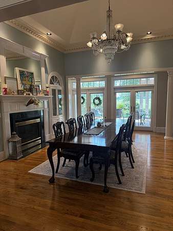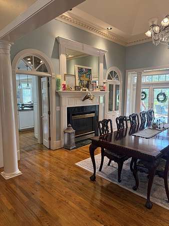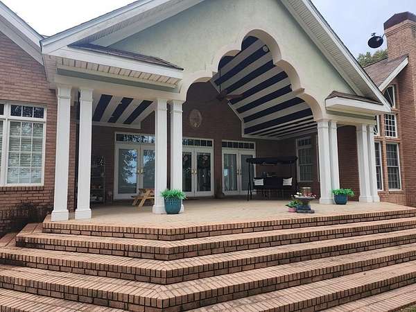 This Stunning 3-Bedroom Luxury Home with 4.5 Baths & Upstairs Bonus Room with 2.49 acres offers luxury, comfort, and functionality all under one expansive roof boasting 5,218 total square feet. Nestled in a quiet neighborhood with views of the golf course, this home features generous living spaces with high-end finishes. Step inside to a spacious open-concept living and breakfast area, complete with soaring ceilings and abundant natural light. For those nights of entertaining or holiday get-togethers, enjoy the luxury of the spacious formal dining area complete with a gas log fireplace. The gourmet kitchen is a chef's dream with premium stainless steel appliances, ample cabinetry, a large center island, and granite countertops. Each of the three bedrooms were thoughtfully designed with en-suite bathrooms, offering privacy and convenience. The lavish primary suite with sitting area boasts an oversized bath with a large ceramic tile shower, double vanity sinks, granite countertops, and a spacious walk-in closet. The versatile bonus room located upstairs offers a full bath and amble storage adding flexibility and extra value - perfect for a guest suite, home office, or media room. For evenings of relaxation and/or entertaining guests, enjoy serene outdoor living under the large covered patio. Added features: Oversized laundry room with separate sink, Lots of storage, Built-in cases, Extra wide doors, 3 HVAC systems (1 controlling the upstairs, 2 for downstairs with 1 for bedroom comfort) Tankless gas water heater, 2 Car Garage, Paved circular driveway, Several outbuildings, Variety of well producing fruit trees. Don't miss your chance to own this exceptional property!