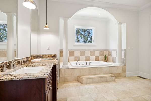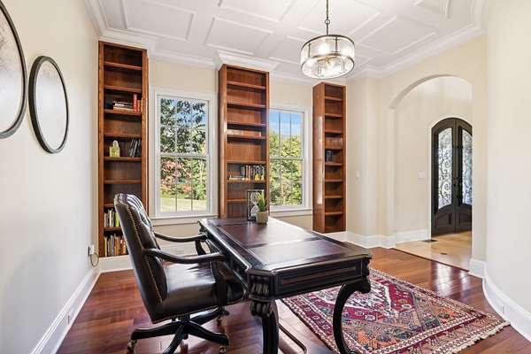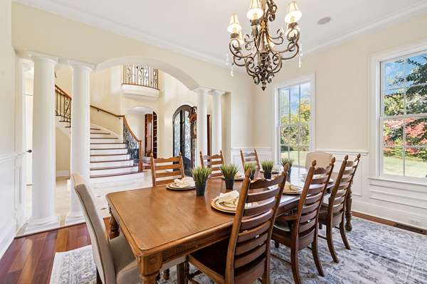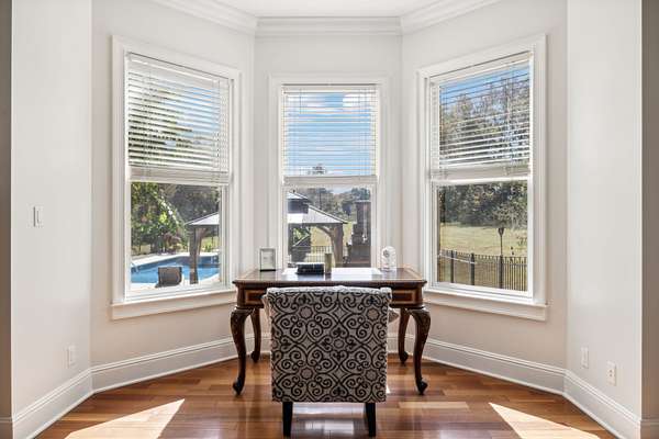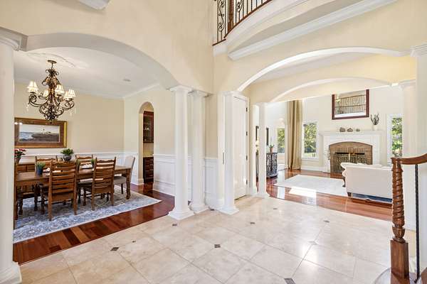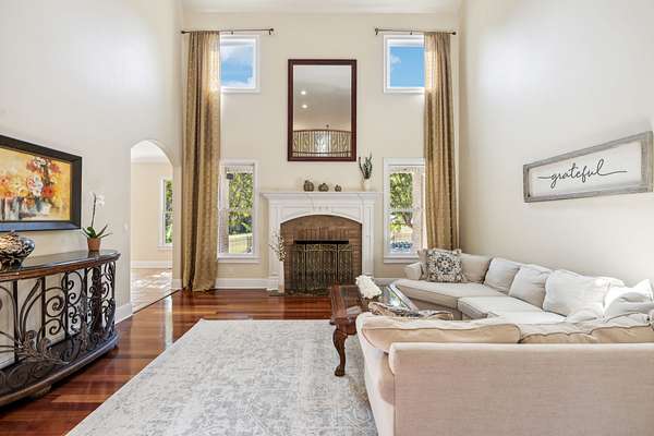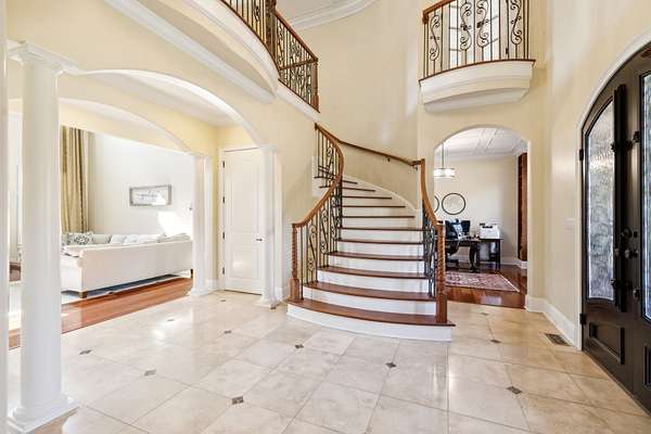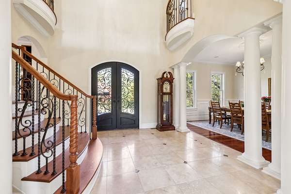 Step into the grand foyer and be captivated by soaring ceilings, a dramatic staircase, and a layout designed for both comfort and entertaining. The main level boasts a stately home office, a large eat-in kitchen with granite countertops, a gas range, walk-in pantry, and seamless flow into the show-stopping two-story living room with panoramic views of the newly added pool and patio.