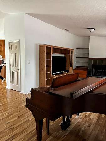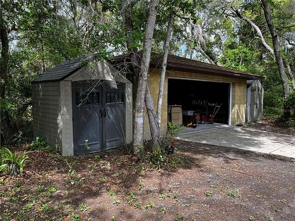 This lovely 3BR/2.5Bathroom home with oversized, detached 2-car garage is set on a beautiful, wooded 3.65 acre lot. Located between Lake Mary and Mt. Dora, just 3 miles west of the Wekiva River, you can enjoy the beauty, lakes and gentle hills of Lake County, while being only 12 minutes from shops, restaurants and amenities in Seminole County. This home is just a 5 minute walk from the biking/walking trail that connects to the Seminole-Wekiva trail that traverses the state of Florida. There is also a 17 mile horse trail in the nearby 14,000 acre Rock Springs Run State Reserve. The 27,000 acre Seminole State Forest is also nearby. There is no HOA, and all the other homes of Deerwood Farms Rd. are on acreage, so you can park your boat or RV on your own propert. There is privacy but not isolation. Well-maintained by the original owners, this home is built of solid Ocala Block, and the windows are all double-pane, keeping the electric bills extremely low. 6 year old new roof and 6 year old 5-ton Trane AC. Kitchen appliances are just 3 years old, cabinets are oak and island is butcher-block top. There are easy-to-put-up hurricane shutters for every window and for the sliding glass doors. Floors in bedrooms and living areas are gorgeous, real wood...glued down to stay. Kitchen and bathroom floors are porcelain tile. The Primary bedroom has a walk-in closet and en-suite bathroom. The living area has a wood-burning fireplace and firewood box, and solid wood shelving/entertainment center that stays. The baby grand piano can stay, or the present owner will pay to move it out if the new owners don't want it. Original garage is now a 21'x23' man-cave with a private entrance and a 1/2 bath, with room to put in a shower. There is a 83" Samsung O-LED TV and Boze surround sound which will stay. Loads of storage closets in this man-cave, too. It could even become a Mother-in-Law space! The detached garage is extra deep at 24'x24' and has two walk-in storage sheds beside it. There are several other similar sheds around the property. Behind the house is a 10'x16' solid Cedar "she-shed" with a tin roof. It has been used as an office, extra guest room and hobby space. A child's 8'x10' play-house is in the back, also. There are lemon, pear and apple trees on the property, as well as a fenced in 30'x50' raised bed area. The property is fully irrigated by the well. This is a beautiful place for a homestead or just peace and quiet.