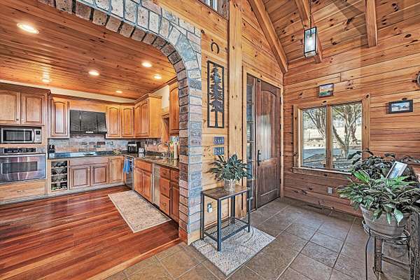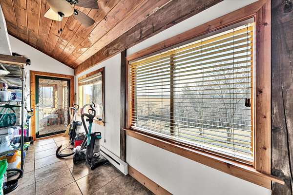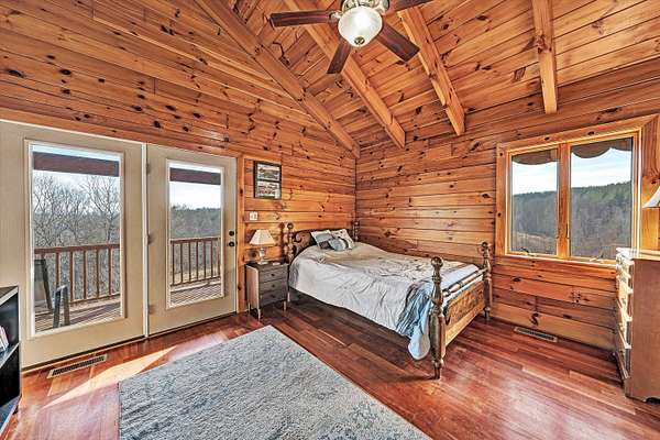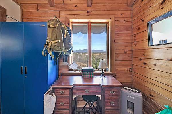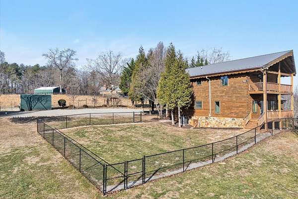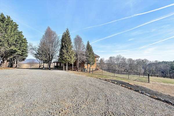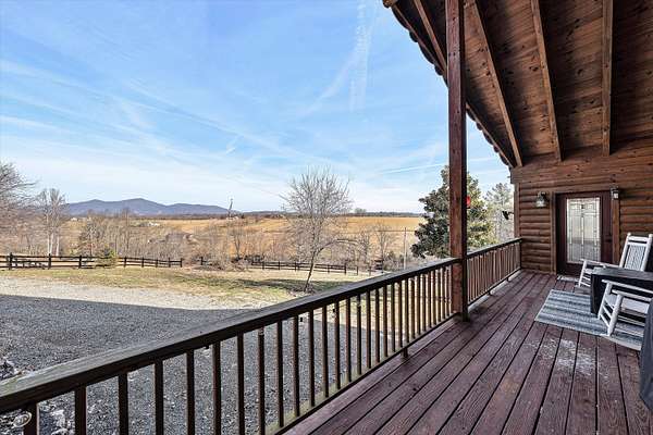 Fantastic log home retreat on 13.39 acres w/spectacular mountain & pastoral views. This picturesque mini-farm is ideal for horses, cattle or other livestock, featuring fenced acreage & a gently flowing stream. A detached 24x30 barn/garage w/lean-to offers excellent space for equipment, animals or hobbies. The entry-level primary suite includes all the bells & whistles, plus a private balcony to take in the breathtaking views. The family room showcases soaring cathedral beamed ceilings & a massive floor-to-ceiling stone fireplace w/gas logs, creating a warm & inviting gathering space. Convenient entry-level laundry adds everyday ease. The upper level offers a dedicated office, 2 bedrooms & a spacious full bath, perfect for family or guests. Recent updates include a new roof (2024), new septic drain field (2024), dog fencing, underground electric service with a 60-amp breaker box to the barn/garage, & five exterior corner lights with LED bulbs for added security & ambiance. See supplement sheet for many additional features.