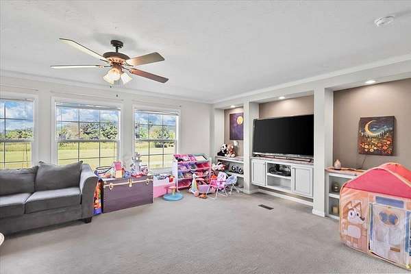 - Bookshelves, Ceiling Fan(s), Closet Light(s), Split Bedroom Floor Plan, Tray Ceiling(s), Walk-In Closet(s)