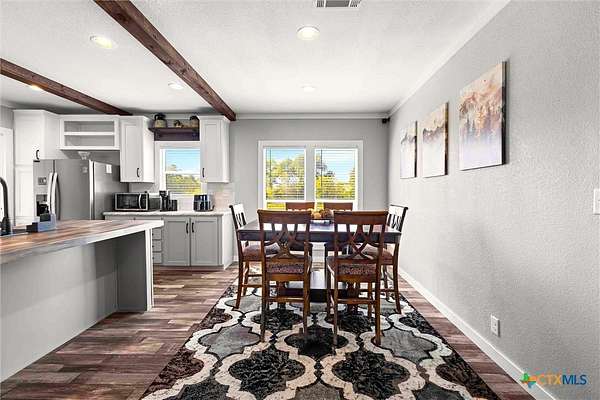 15.8 Acre Homestead on West Fork Deer Creek! Discover the perfect blend of comfort, recreation and country living with this beautiful 16 acre property featuring approximately 780 feet of West Fork Deer Creek frontage and approximately 550 feet of FM 107 (Eddy Gatesville Parkway) frontage. The rolling terrain, fertile pastures and excellent hay production make this an exceptional Ag-Exempt property. The 2024 Palm Harbor Sheridan 4 is a contemporary ranch style home offering four spacious bedrooms, two baths and stylish design and amenities throughout. Enjoy the convenience of an attached 30ft, three-car carport plus a hobby or storage workshop with an 8x8 foot roll-up door, ideal for equipment, projects, or additional storage. The property also features full perimeter fencing with a private gated drive. The land includes open pasture with approximately 10 acres up front and 6 acres across the creek, perfect for horses, livestock, or outdoor recreation. The property currently yields two healthy hay cuttings per year, and the creek and surrounding landscape create a natural habitat for deer and other wildlife. Located just minutes from Moody with quick access to I-35, only 45 minutes to Austin, one hour to Dallas and 20 minutes to Temple or Belton, this property offers both convenience and tranquility. A great opportunity to own a turn-key homestead that combines comfort, recreation, and country living in a beautiful Central Texas setting. This could potentially be a great site for commercial use and or RV park. Bruceville-Eddy ISD. Elm Creek Water. Ag-Exempt. Survey Available. Buyer to verify taxes; the house is currently not included on the 2025 taxes.