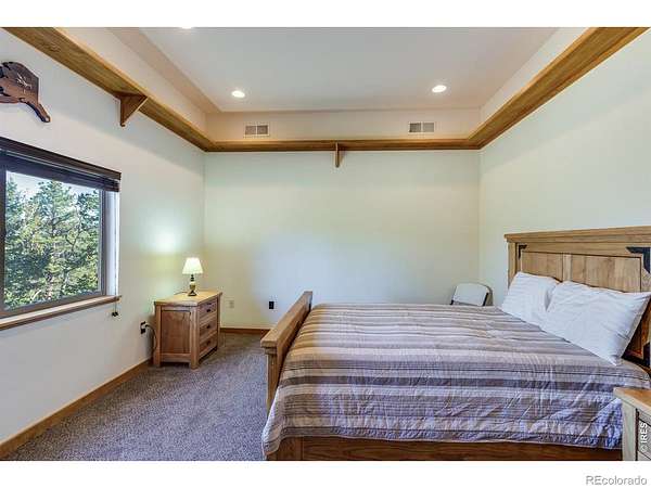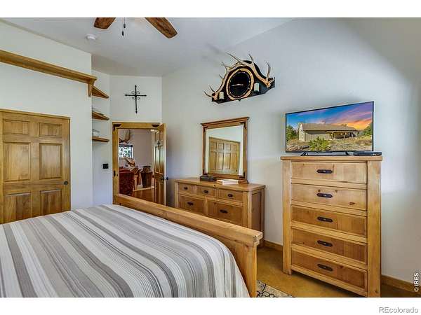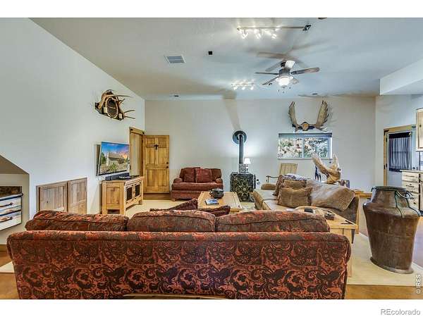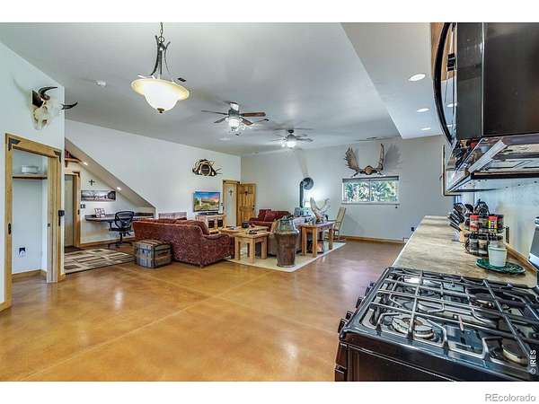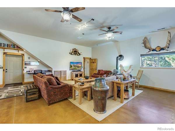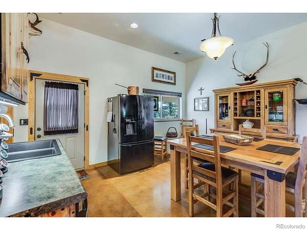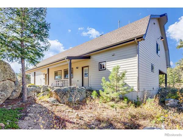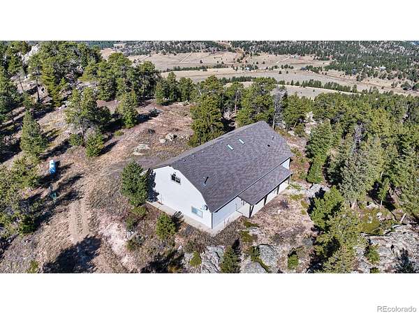 Tucked away on 10 serene and secluded acres, this custom-built home offers unparalleled privacy and practical mountain living, yet just a short drive to town. A comfortable retreat where you can truly make your home among the pines.The heart of the home is an expansive, open-concept main level designed for gathering. A spacious great room, kept comfortable year-round with redundant heating options and a whole-house fan, flows seamlessly into a functional dining area.The space is anchored by a stunning kitchen featuring handcrafted forever cabinetry, where gorgeous beetle-kill pine doors are set over structural steel frames and finished with custom metal handles-a true showcase of unique and durable craftsmanship. Easy-to-maintain stained concrete floors and a peaceful bedroom and full bathroom on this level offer the ease of single-level living. Upstairs, three massive, light-filled rooms are blank canvases perfect for a secondary family room, or private guest quarters.These versatile spaces provide ample room for family, guests, or a home office-each offering a quiet escape. A standout feature is the integrated, heated, and oversized 4-car garage-an immense space perfect for vehicles, a workshop, or storing all your outdoor gear. From here, you can step out and enjoy your personal slice of the Rockies, complete with mature trees, dramatic rock outcroppings, and breathtaking vistas of the Continental Divide. This property has been thoughtfully prepared for the future. The home is pre-wired at every opening for a bear deterrent system for ultimate peace of mind. Beyond the home, utilities are stubbed in for a future electronic gate and lighting.Utilities have also been stubbed to a prime building site on the property, making it significantly easier to build your future dream home. A unappropriated natural spring on the property creates a serene wildlife haven, attracting deer, birds, and other local wildlife throughout the seasons.Schedule your private tour today.