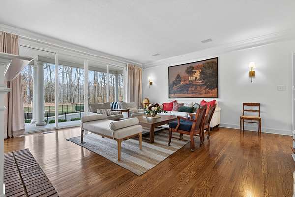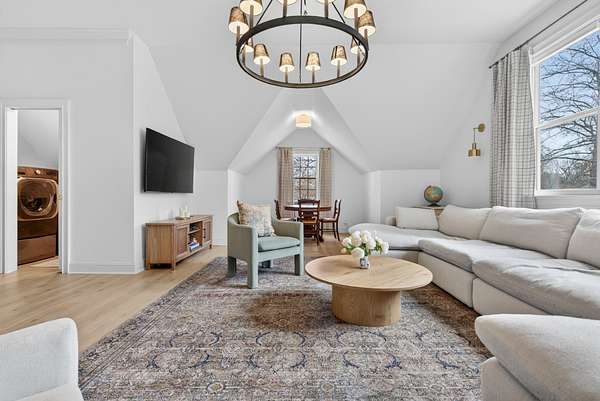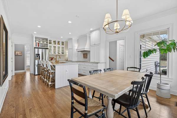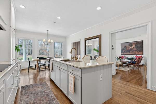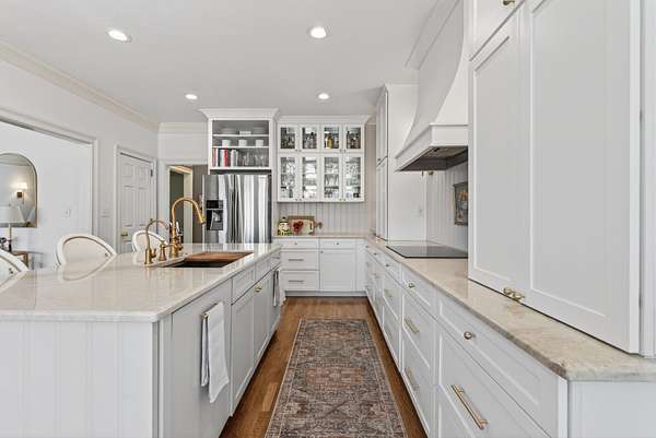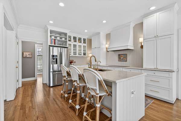 The expansive floor plan is designed for versatility, featuring dual primary suites—one on the main level and one upstairs—making it ideal for multigenerational living. At the heart of the home, the chef’s kitchen underwent a massive renovation, featuring an induction cooktop, natural stone counters, and a secondary scullery equipped with double ovens and an oversized pantry.