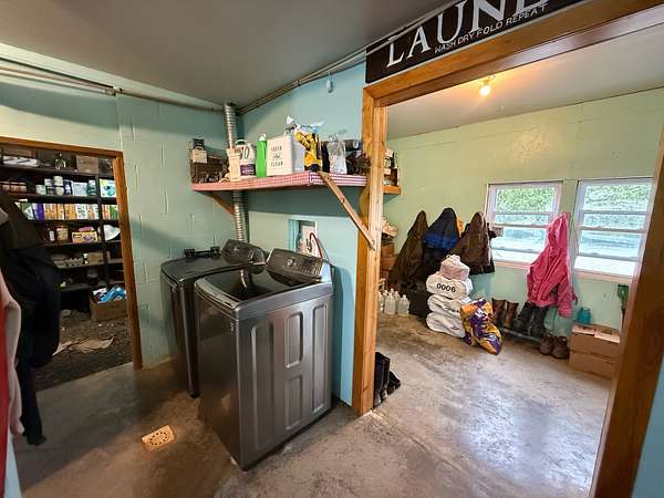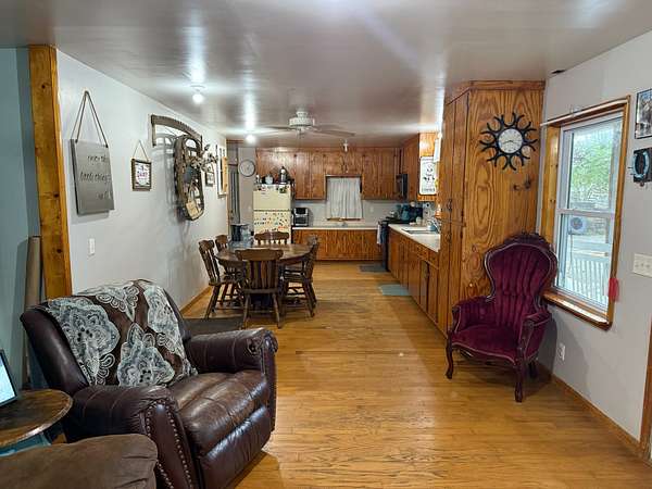 The 1,366 sq ft home offers modern comfort with rustic flair, featuring heated concrete floors that keep things toasty and a brand-new water heater to keep the hot water flowing. The crown jewel? A massive 50x40 insulated shop with a large outdoor wood stove that heats both the house and the shop. Whether you're wrenching, woodworking, or just staying warm, this setup delivers. The shop is built for functionality with a large bay door on the back, a convenient man door beside it, and a front garage door for easy access.