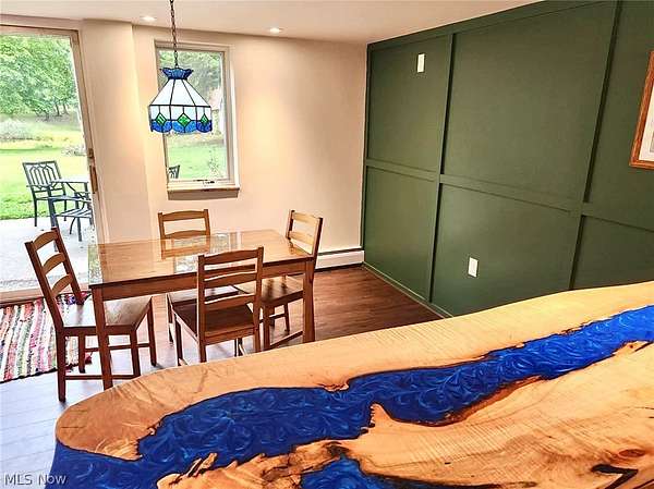 Wake up to water views and unwind on 3.65 private acres-your peaceful retreat awaits. Nestled on a serene, park-like setting with a beautiful, stocked pond, this updated 4BR/3BA split-level invites you to slow down and enjoy the view. Imagine mornings with coffee on the expansive porch overlooking the water, and evenings unwinding as the sun sets over your own private pond. The kitchen is filled with natural light from skylights and features granite countertops, abundant cabinetry, and a chef-quality Big Chill range-perfect for gathering and everyday living. The dining area opens directly to the porch, making indoor-outdoor living effortless. The main-floor primary suite offers a cozy escape with heated floors and a heated towel rack. Each bedroom provides generous space and large closets. The finished lower level creates endless possibilities-featuring a new fireplace, new flooring, and a bar area with plumbing already in place. With sliding doors leading to a private patio, this space is ideal for guests or easily converted into an in-law suite. A welcoming family room with a bay window and window seat offers the perfect spot to relax and take in the scenic surroundings. Outside, the property continues to impress with a 2-car attached garage and a separate 2-car workshop complete with mechanic's pit, 220 amp service, and generator transfer switch-ideal for hobbyists, car enthusiasts, or serious workspace needs. Additional updates include new wiring throughout, French drains installed around the home, high-speed internet cable run to the property, well-maintained septic, and efficient boiler/base heat with backup heat pump/central air and full air exchange system. A rare opportunity to own acreage, water views, and a home that truly feels like an escape.