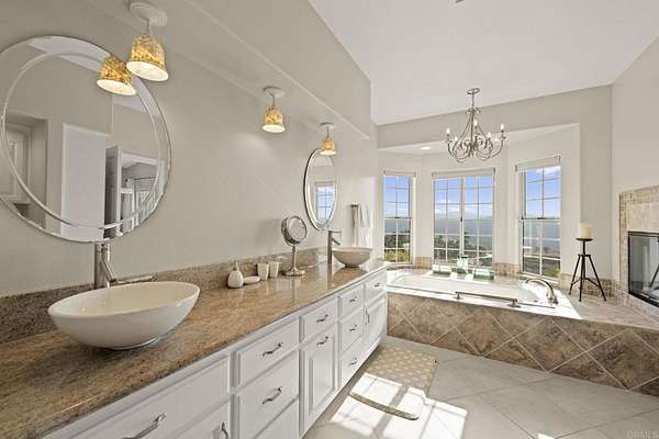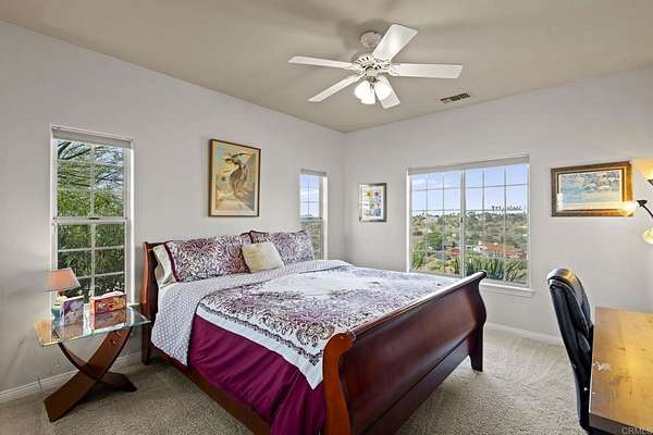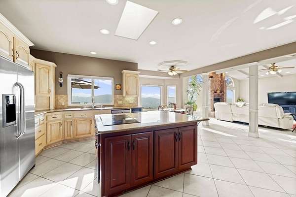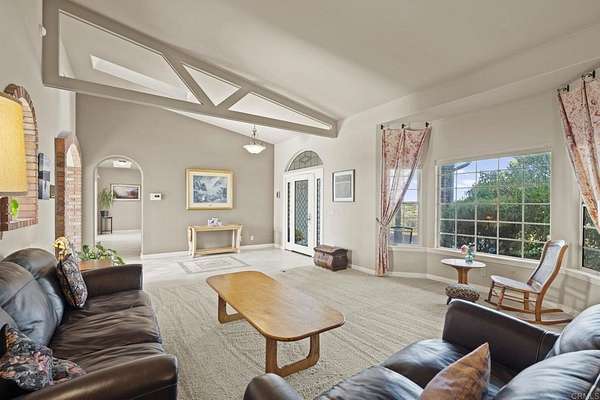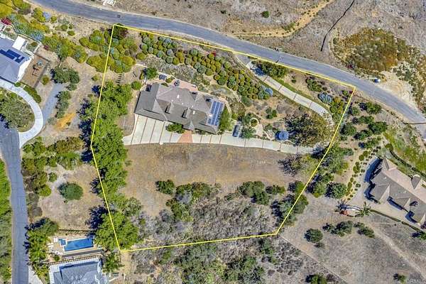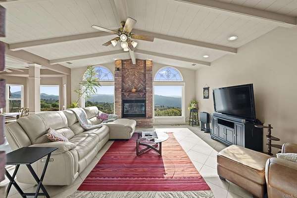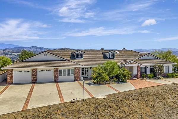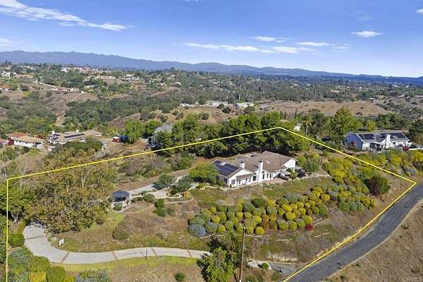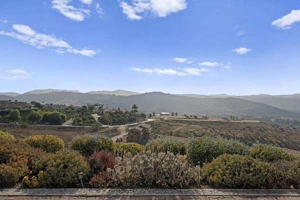 TRANQUIL, RIDGE-TOP CUSTOM-BUILT HOME with unparalleled panoramic sunrise AND sunset views from nearly every room in the house. Majestic rolling hills and Palomar Mountain to the east and then there's sweeping views of rolling hills and the Sleeping Indian mountain formation to the west, bringing in the gentle ocean breeze. From the moment you ascend the long elegant driveway you'll feel transported to your very own top-of-the-world private retreat. The views from this home are absolutely breathtaking and a MUST SEE! The gorgeous beveled-glass front door welcomes you into this expansive 4-bedroom home boasting beautiful high beam ceilings, as well as, an additional separate office/guest unit with its own entrance and kitchenette. This spacious home is ideal for entertaining with the generously sized kitchen alongside the welcoming family room, all of which flow gently into the formal dining and living rooms. Plus there's a great perk with having fully-owned solar, TWO walk-in closets in the primary suite, spacious kitchen with walk-in pantry, induction oven, high ceilings, raised garden beds, lime and lemon trees, a gazebo perfect to enjoy the morning or even the afternoon views. With well over 2 acres of land, the possibilities are endless--you could possibly have your own avocado grove, swimming pool, ADU, workshop or just leave it the way it is and enjoy this magnificent property located just minutes to the 76 yet it feels like it's in another world--peaceful and serene. This is a MUST SEE home.