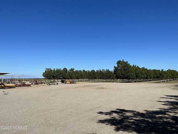 This is a turnkey home & farm including equipment. Custom built home in 2007 as the center of our irrigated farm. We have wide open spaces with the Chiricahua mountains only 30 min away. 2,500 sqft home & pecan orchard located @ 3600 ft. elevation in San Simon, Cochise County, AZ. The home is 3br/2.5bath with an extra office/craft/guest room. It also includes a 30'x30' Mueller metal building with 2-20'x30' covered carports on each side. The building has an evaporative cooler, lighting and washdown duty pvc interior wall panels. The home is 2x6 construction with Mueller CF metal roof panels. Walls have an additional 3/4'' foam and 3 coat stucco finish. Interior walls are finished with American Clay Earth Plaster. The kitchen features a commercial 48'' US Range (propane) with doub oven and LG Hi-Macs countertops. All stainless sink and stainless Jenn Air dishwasher. The great room features a wood burning kiva fireplace. Also have a Water Tec R/O drinking water system installed. The home also has ceramic tile through out and engineered hardwood floors in the bedrooms & office. The bathrooms have all Kohler fixtures. Exterior & interior doors are all solid rustic pine and trim is all rough cut pine from northern NM. The landscaping is all chihuahuan desert plants on drip irrigation and the back yard features 2 covered dog kennels and buffalo grass lawn with sprinkler irrigation. There is also livestock & horse facilities including a 20'x20' hay barn and 40'x20' of covered livestock corrals. There are automatic waterers in the corrals. The farm consists of 17.01 ac of pecan trees planted in 2015 (2ac.) and 2017 (15.01ac.). Varieties are Wichita, Western & Waco planted on 20'x40' spacing and irrigated with 1/2 gpm Nelson R-7 sprinklers. 2022 harvest was 750lbs per acre in their 5th leaf. There is a 3700 acre pecan farm & processor across the road that offers custom harvest, cleaning & marketing services as an added bonus. The property has a domestic well that is 790' deep and pumps 160 gpm @ 40 psi. The static level is 318' and pumping level is 378'. The 30 hp submersible pump/motor is currently set at 480'. A new irrigation well was drilled in 2023 and pumps 600gpm. It is 1226' deep with a 620' pump setting. The water quality is excellent with TDS at 279 ppm. Sodium is only 65ppm. Filtration at the well includes Fresno sand separator & Amiad screen filter. Fertilizers and soil amendments are injected into the irrigation sets via AgriInject 50gph 3 phase pump. The domestic water system is fed off of the irrigation well and consists of 2-3,000 gal storage tanks and 3-85 gal pressure bladders and Goulds pressure pump. This area in Southeast AZ is a premier growing region for pecans with yields averaging 2500 lbs per acre for 10 year old trees. Pecans have crop revenue protection insurance with a county trigger amount @ $3200 per acre. The tractor is a 2006 John Deere 6520L, 4WD, with front mounted PBM hydraulic spray booms for weed control. Includes 225 gal. 3 point hitch tank and Hypro roller pump & TeeJet controls. Additional equipment: 14' Vrisimo low profile flail mower, 6 way Bison hydraulic blade, field cultivator. There is an additional 1/4 acre with drip irrigation for planting farmers market type vegetable crops. Property is fenced & gated.