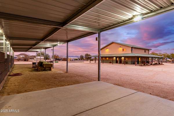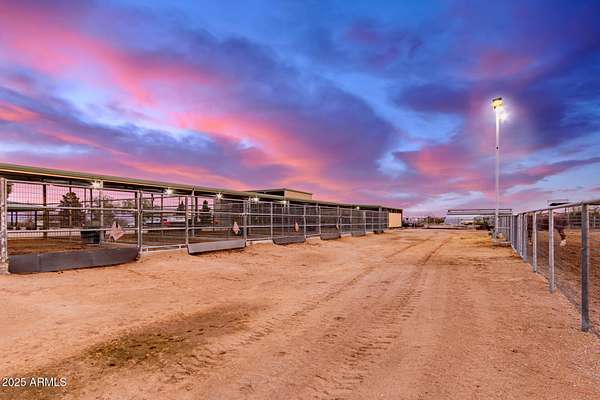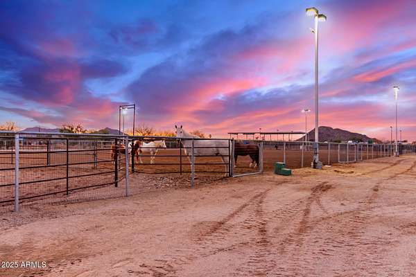 Wide open living on this 4.3 acre horse property in San Tan Ranches. This turn-key property comes complete with a roping arena, shade for roping boxes, cow pens, horse stalls, and hay storage. In Suburban Ranch Zoning, this property offers the freedom to enjoy livestock, agricultural use, and a home-based business. Room for parking trailers, equipment, and RVs with easy access in and out and there is plenty of land to add additional structures. It's an ideal setup for anyone wanting space to work and live in one place - at home. The ranch offers 3 bedrooms, 3 bathrooms, an open layout, soaring ceilings, and a spacious loft. The kitchen includes Upgraded Cambria Quartz Countertops, a center island, and plenty of beautiful, organized cabinet space. Ideal wraparound covered patio included