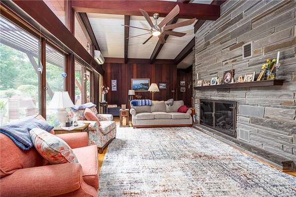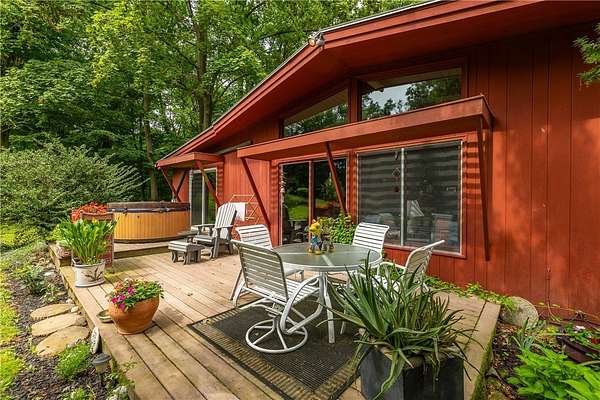 Open Sun, 9/7/25, 11:30 - 1pm. Nestled in the woods with views of Cayuga Lake, this contemporary home offers a private retreat in the heart of the Finger Lakes. Walls of windows bring in natural light and frame the natural setting, while vaulted ceilings and an open layout create a spacious, airy feel. Multiple decks and outdoor living spaces make it easy to enjoy nature. Whether you're seeking a year-round residence or a seasonal getaway, this home blends modern comfort with a serene lakeside setting just minutes from Seneca Falls, award-winning wineries, and the Finger Lakes' best attractions.