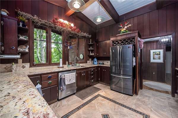 - Bath In Primary Bedroom, Cathedral Ceilings, Country Kitchen, Granite Counters, Hot Tub Spa, Kitchen Family Room Combo, Living Dining Room, Natural Woodwork, Separate Formal Dining Room, Separate Formal Living Room, Skylights, Sliding Glass Doors