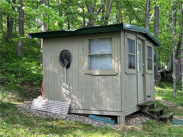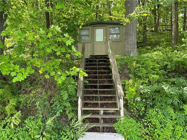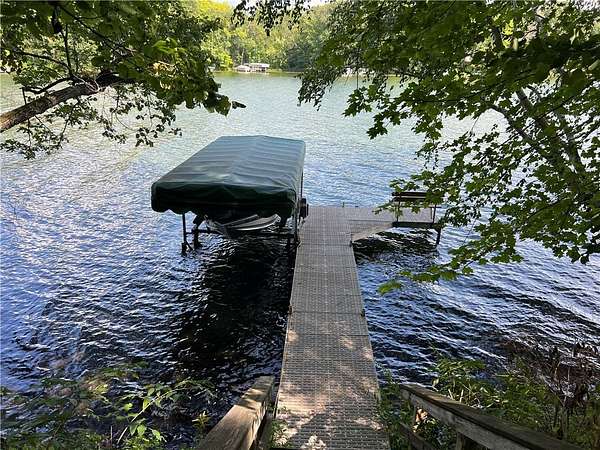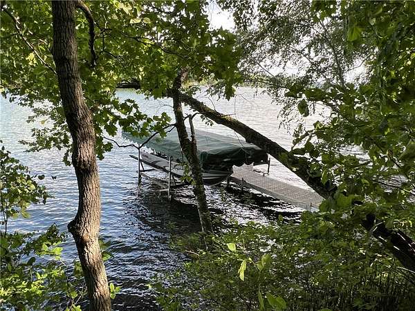 Phenomenal lot! Craft your dream home or cabin on the serene shores of Red Cedar Lake with this remarkable parcel on the highly sought after Stouts Point! Much of the site prep work has been done on this private, wooded lot offering captivating big lake views perfect for your waterfront escape. With 155 ft of gently elevated shoreline and a firm rock/gravel swimming bottom, it's an ideal setting for relaxation and has great fishing right off the dock. The property includes a finished boathouse with power, established driveway, concrete camper pad, deck area and power already connected to the building site. Enjoy the amenities of the Loch Lomond Beach Club, which features a modern clubhouse, pool & splash pad, a convenient boat landing, and a variety of events and activities for all ages. Additional perks include a designated garbage drop-off and recycling area. Located in a prime recreational area with direct access to ATV/UTV trails right from your doorstep. Includes dock and boatlift.