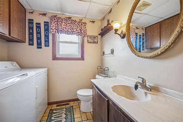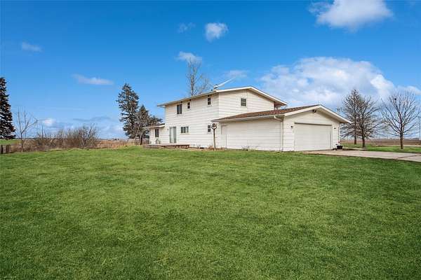 This acreage offers the perfect balance of open space, functionality, and potential, ideal for hobby farmers, equestrians, or anyone craving room to breathe. Lovingly cared for over the years and priced to allow updates. Soak in wide-open sunset views at the end of each day and enjoy a home designed for both gathering and everyday living. The main level has a flexible front room that works beautifully as a dining space, home office, or additional living area. A two-sided fireplace connects the heart of the home to a vaulted family room filled with natural light. Upstairs, you'll find two guest bedrooms and a full bath, along with a private primary suite complete with a walk-in closet, dressing area, and en-suite bath. The lower level includes an egress window, making it easy to add a fourth bedroom, plus a family room, bar area, and ample storage. Outside is where this property truly shines. The barn offers 4?5 stalls and sits conveniently next to the outdoor riding arena, perfect for daily training or weekend rides. A 40 x 40 machine shed provides excellent space for equipment, tack, feed, or hobby storage. An attached two-car garage adds everyday convenience. Whether you're looking to keep horses, start a small hobby farm, or simply enjoy the peace of country living, this acreage delivers space and serious potential. All information obtained from seller and public record.