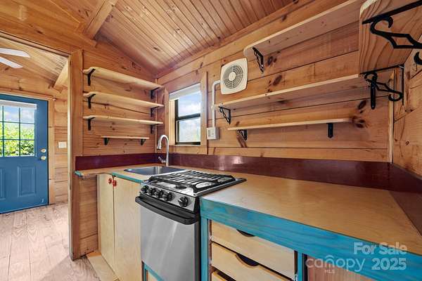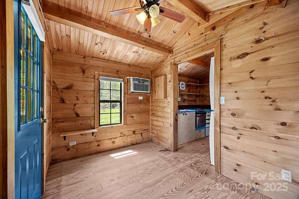 Wake up to the sound of flowing water-this 312 sq ft park model tiny home offers 200 ft of private Broad River frontage. Live in the tiny home while you build your dream home! Land includes 2 bedroom septic and private well. Home features cork/wood flooring, a propane wall heater, metal roof (2019), and underground utilities including high-speed fiber-optics. Owner created a homesteading paradise with raised garden beds, landscaping, and fruit trees-pear, peach, plum, elderberry, and blueberries near Hwy 9. Home sits above the 500-year flood line; and while Hurricane Helene disturbed the land and aesthetic skirting, the structure remained secure. A new power meter base was installed to code and the well pump is operational. Excellent opportunity for private getaway, short-term rental, build your own mountain retreat or potentially add-on to the existing structure. As-is, no repairs by seller. Contact agent for more information about lending options.